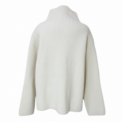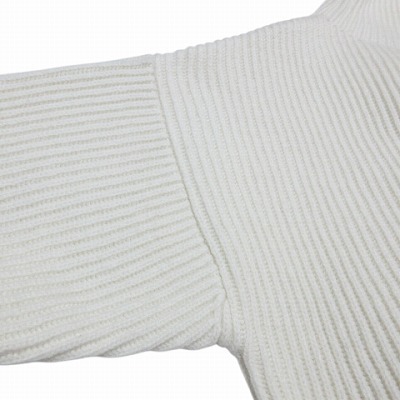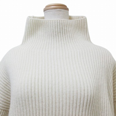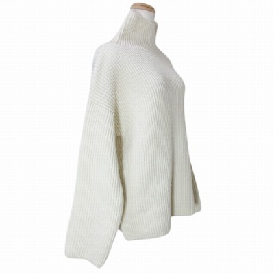 エストネーション 近年 畦ハイネックニット セーター 厚手 長袖 ローゲージ ウール ドロップショルダー アイボリー フリーサイズ ■GY09