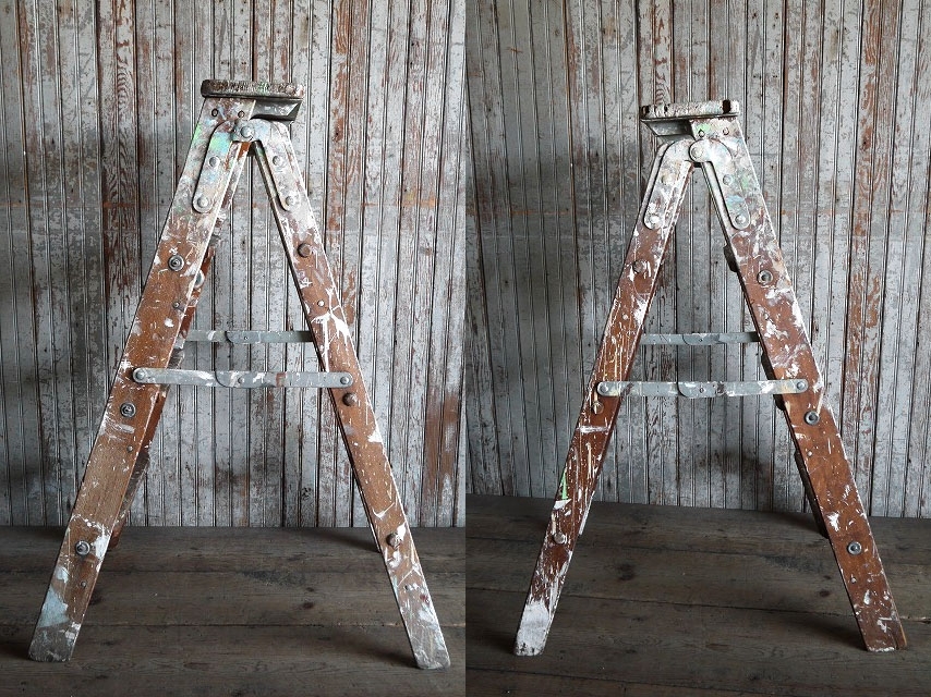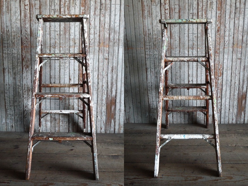 | 商品説明 岡山STAGEより出品します。アメリカで買い付けたアンティークのステップラダーです。経年による風合いがアンティークならではの趣があります。塗料の付着具合がシャビーシックな雰囲気で店舗やガーデニングのディスプレイにお勧めです。耐久性としては古い物になりますのであくまでディスプレイとしてお考えください。状態ですが全体的に使用感、経年による木質劣化、金属劣化やサビ、塗料の付着、くすみ、擦れ、色褪せ、傷、汚れ、ささくれ、欠け、ひび割れ、歪みやガタつき等はございますが雰囲気を損なうようなダメージはなくアンティークならではの良い状態かと思います。あくまでアンティークになりますのでご理解いただける方のご購入をよろしくお願い致します。 サイズ 開脚時:高さ約96.5cm、開脚時:脚の奥行き約73cm、天板の横幅約34.5cmです。 予定発送方法 保障の利く佐川急便の元払い200cmサイズ料金で行います。 コメント 店頭にも出しています。タッチの差で売れた場合はご了承下さい。■落札後の連絡及びご質問の返答は基本的に午前10時~午後6時までとさせて頂きます。毎週水、木曜日、年末年始や時間外でのご連絡は休み明け及び翌日のご連絡となりますので予めご了承下さい。 STAGEホームページ https://stage-stage.ocnk.net// |