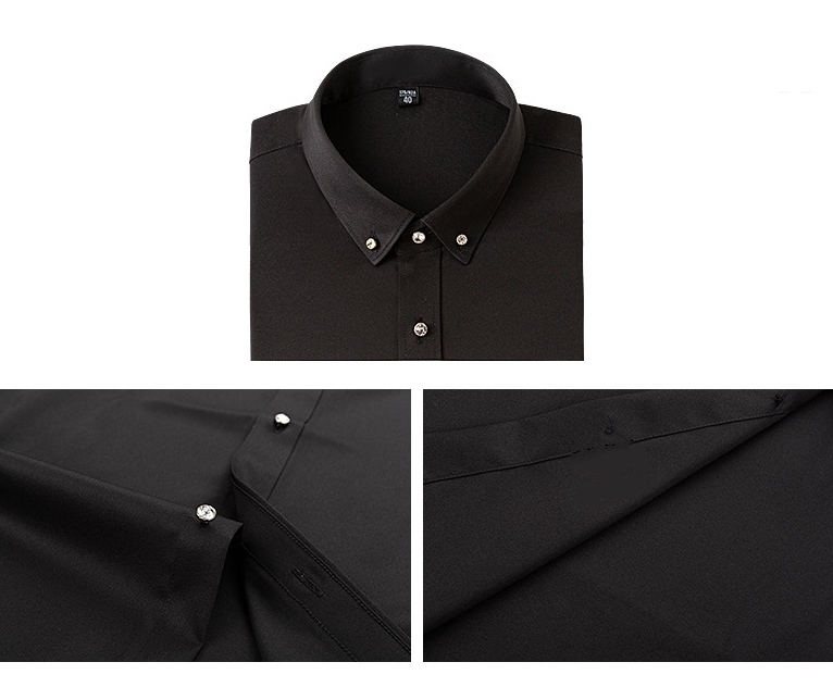 P618-2XLラインストーンボタン ワイシャツ メンズ 新品DCKMANY ノーアイロン 長袖シャツ ボダンダウン ドレスシャツ シルクタッチ/ブラック