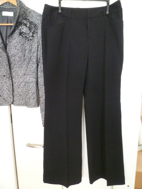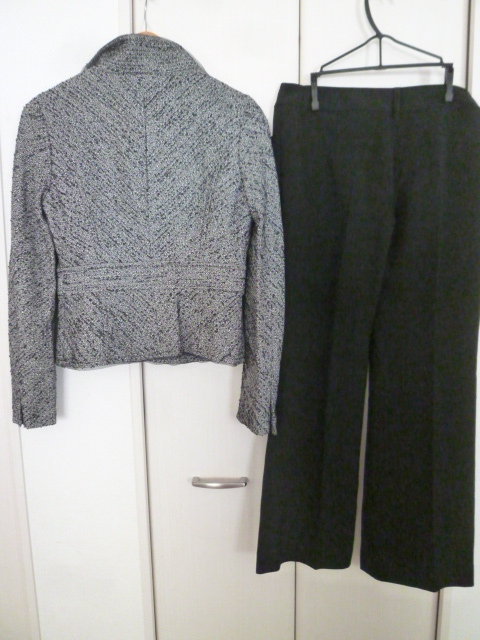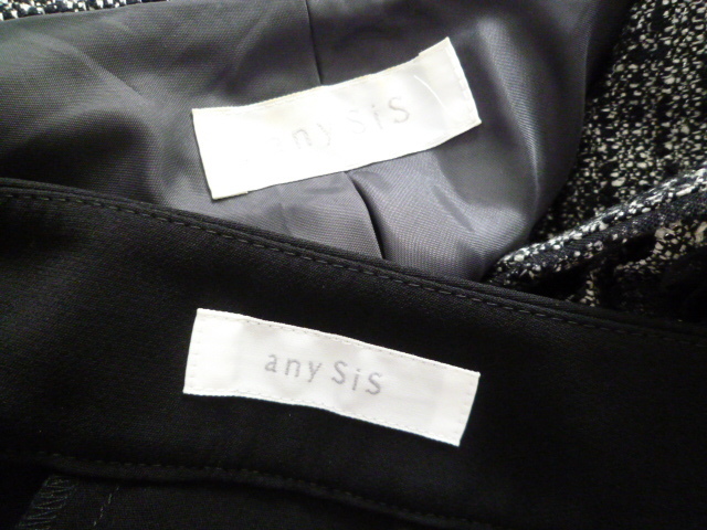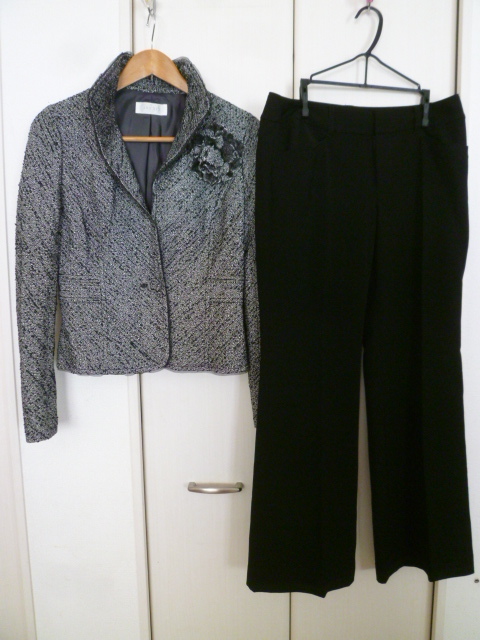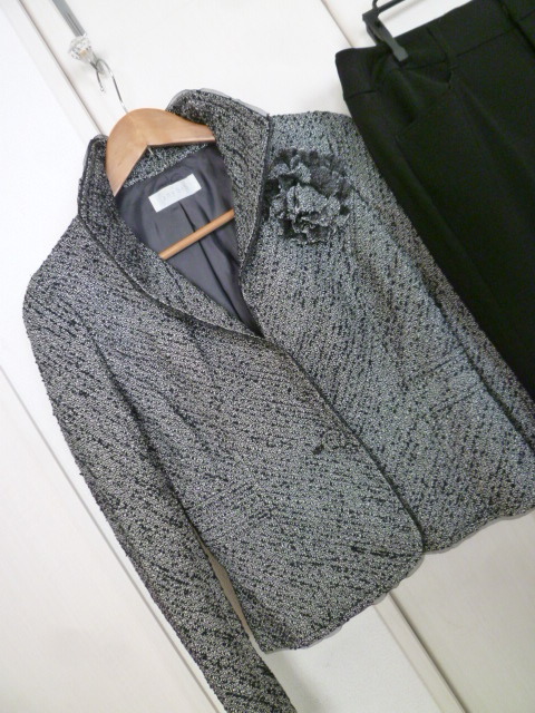 any sis/エニィシス◇モノトーンツィードジャケット黒パンツスーツ上下セットアップスーツ3・L/コサージュ付きオンワード樫山◇ST725