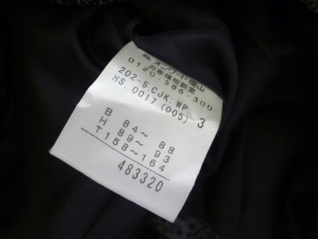 ジャケット(脇平置き44、着丈49)パンツ(W平置き41、着丈95)