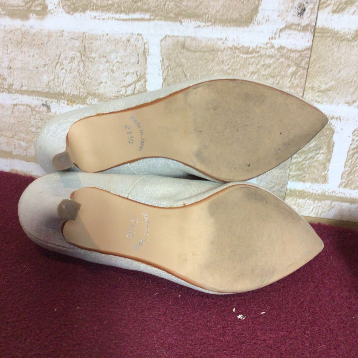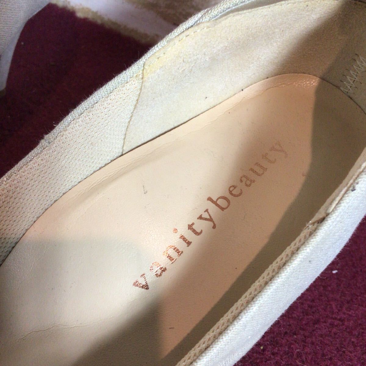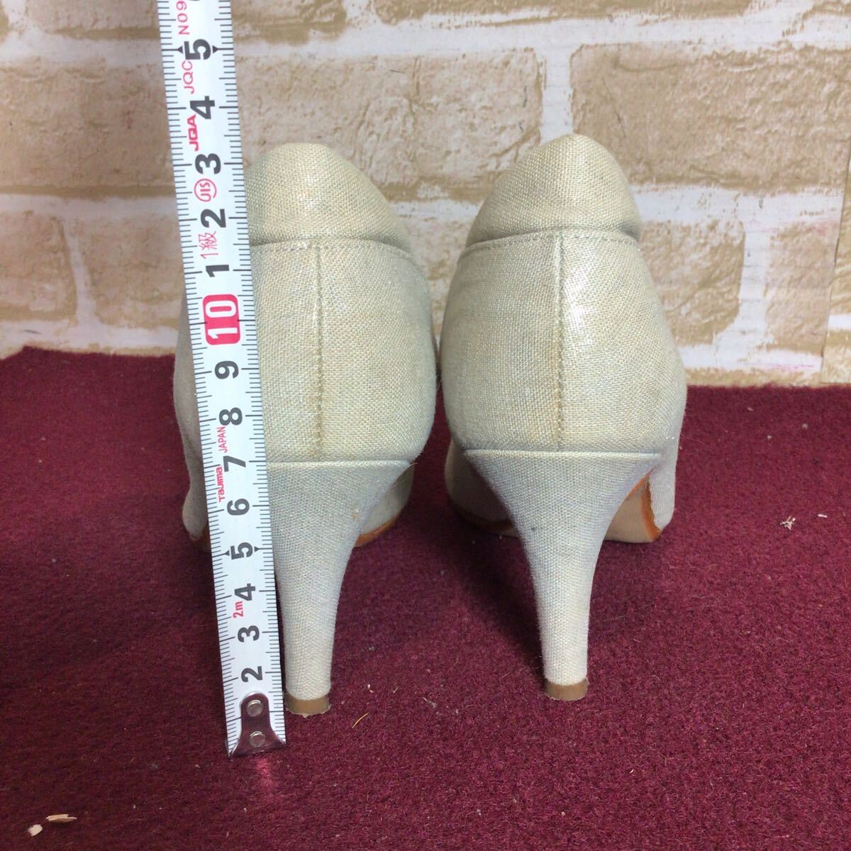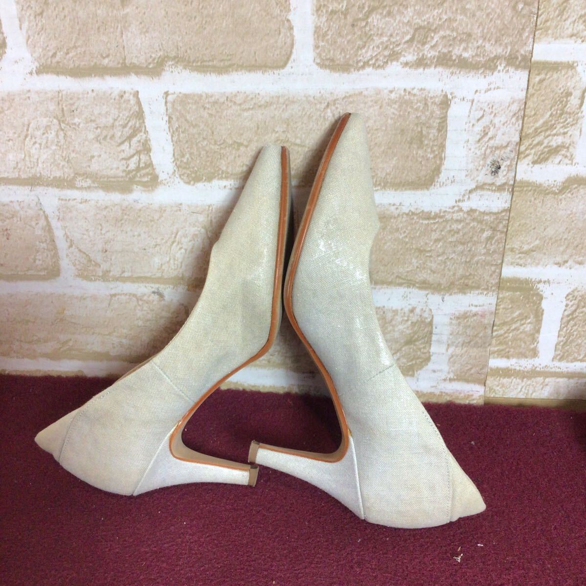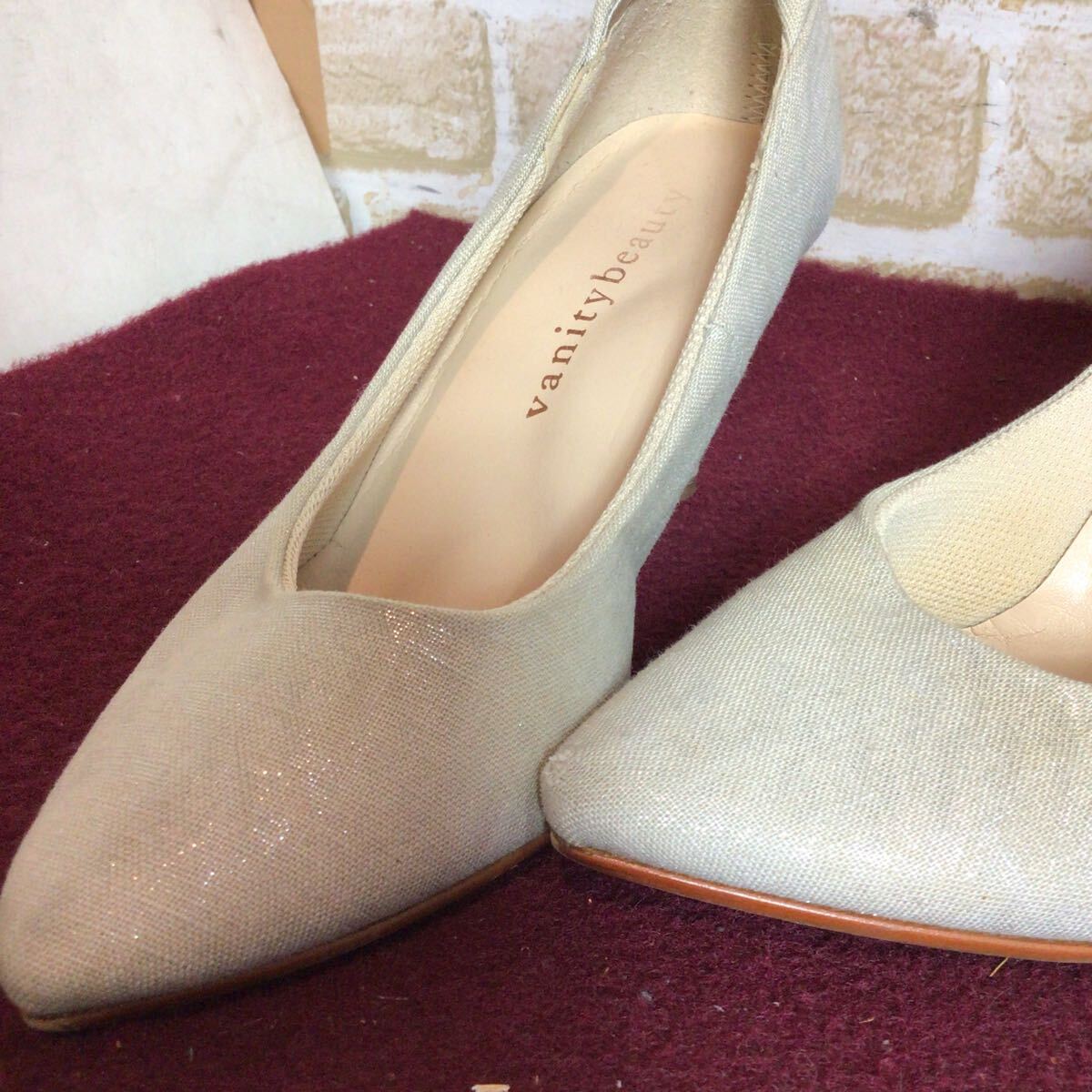 【売り切り!送料無料!】A-226 vanitybeauty!パンプス!21 1/2!ベージュ!ラメ入り!ファブリック素材!普段ばき!旅行!おしゃれ!中古!