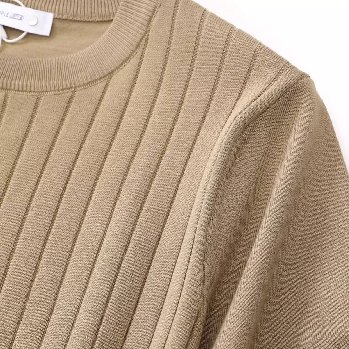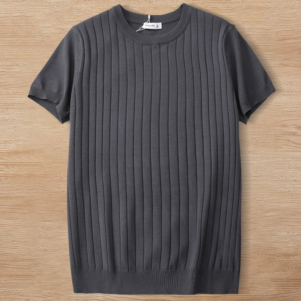 W1717-XLダークグレー 新品 サマーニット 半袖 ゴルフ Tシャツ メンズ 春夏 リブ編み 接触冷感 洗濯可 夏 薄手 細身 通勤 ニットソー 盛夏
