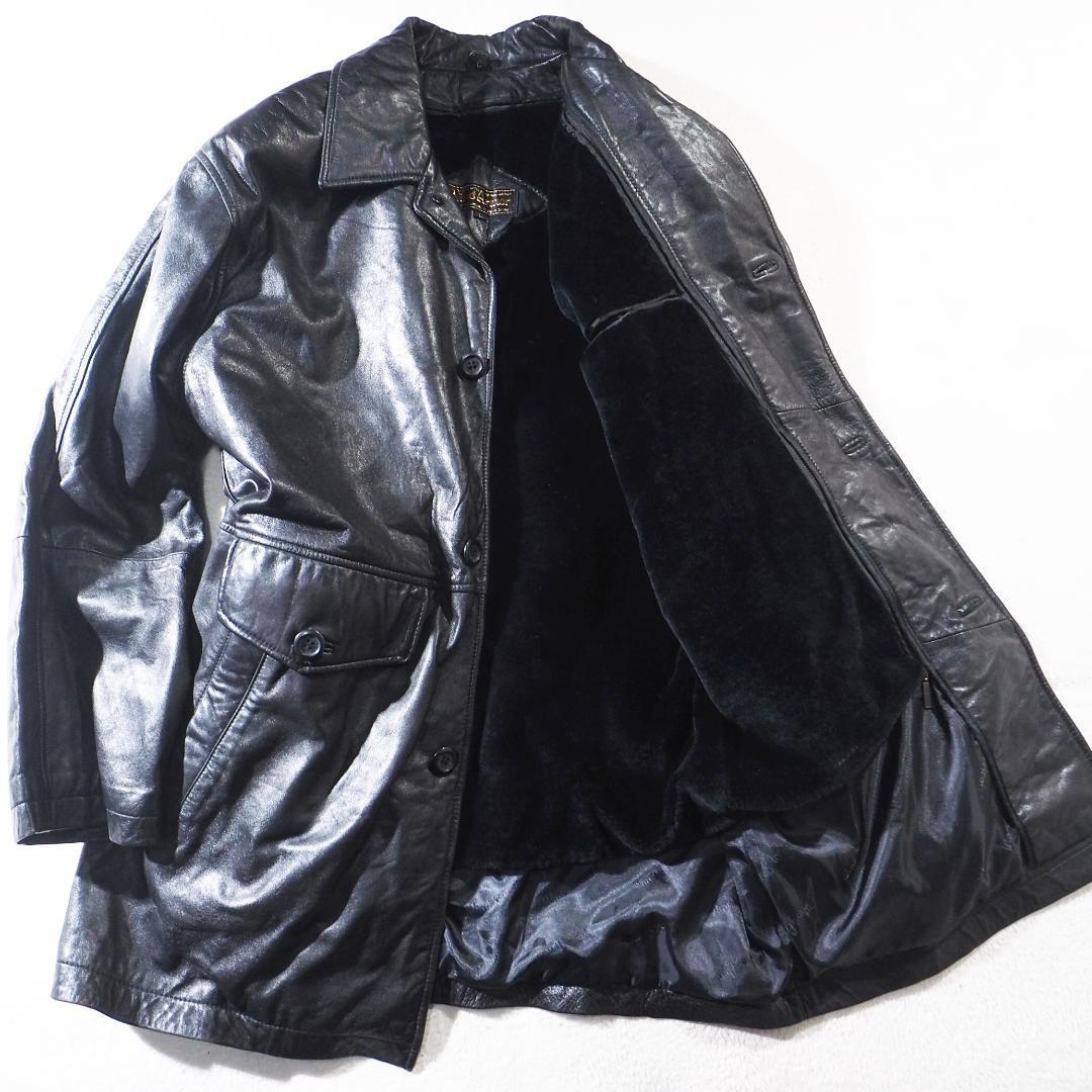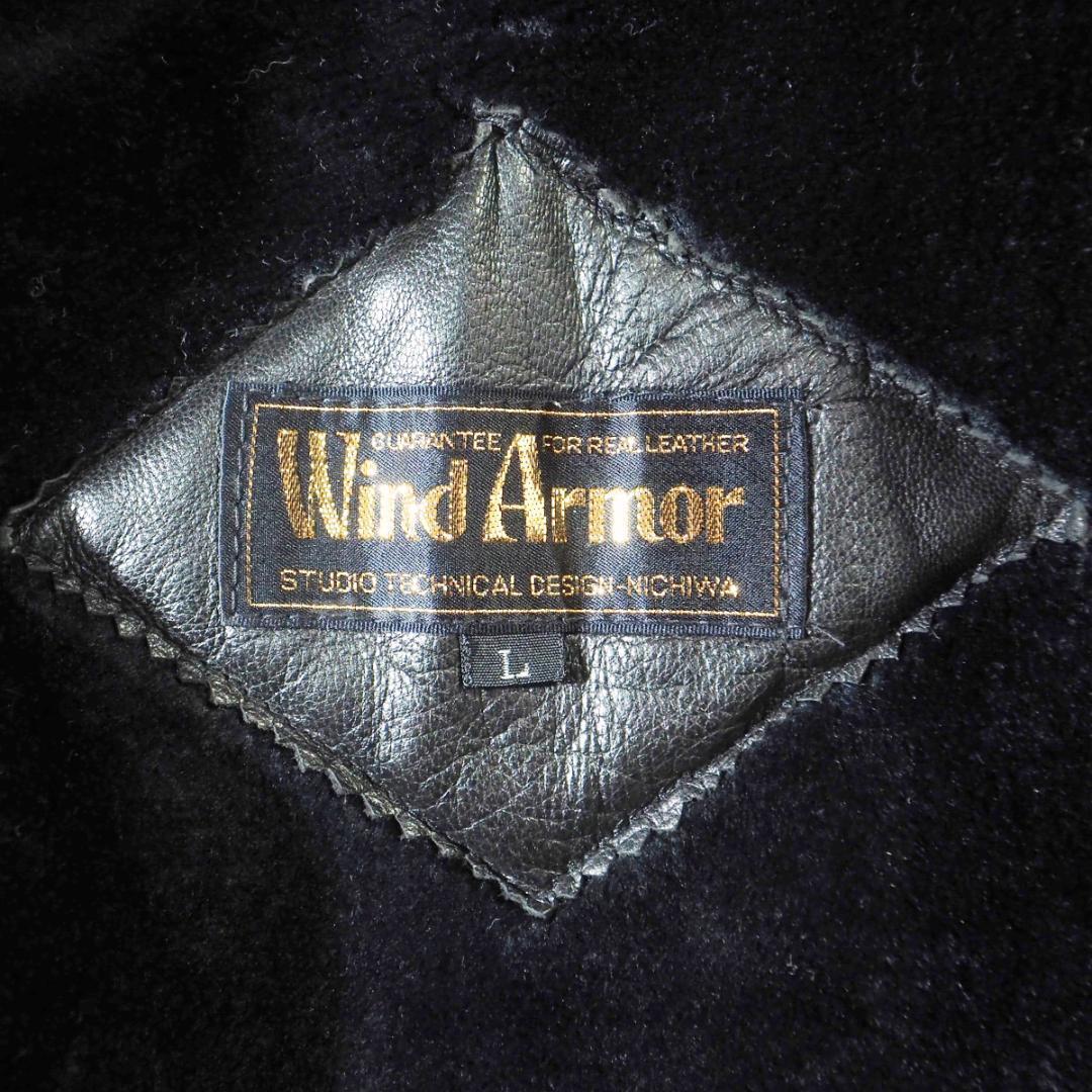 ウインドアーマー Wind Armor レザーコート羊革 ラムレザー カーコート 本革 ブラック 黒 ボアナイナー脱着可 L(XL相当) 大きいサイズ