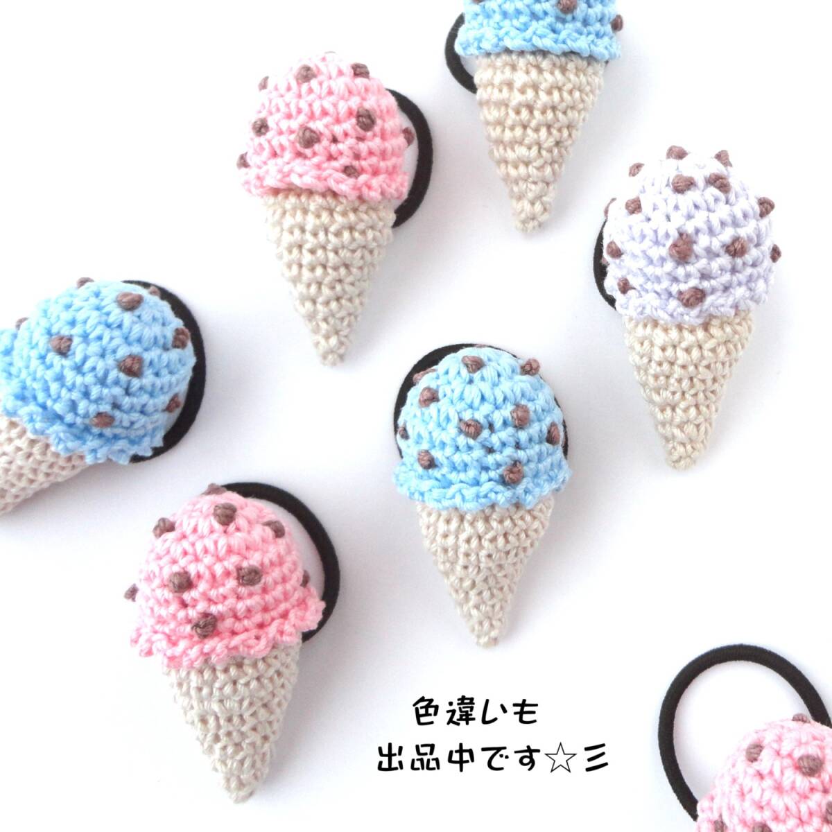アイスクリームのヘアゴム*チョコミント*チョコチップ*レース編み*ハンドメイド*b823