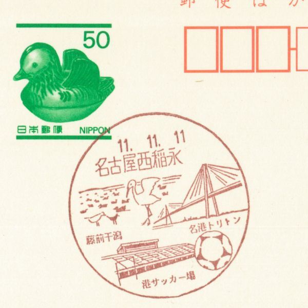 風景印☆初日☆愛知・名古屋西稲永・H11.11.11