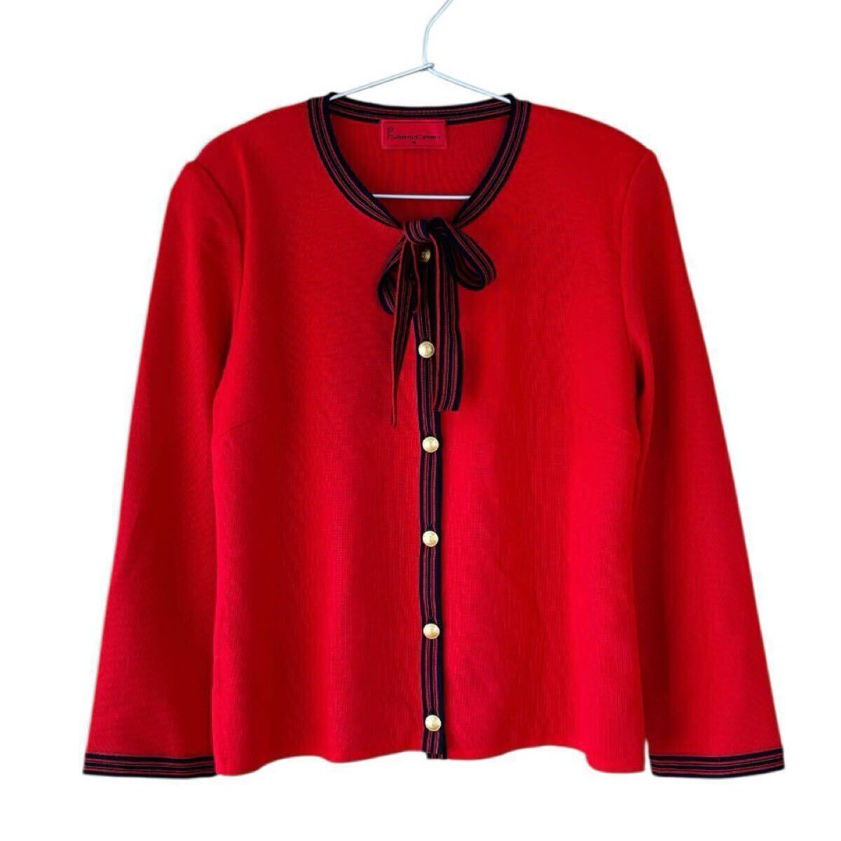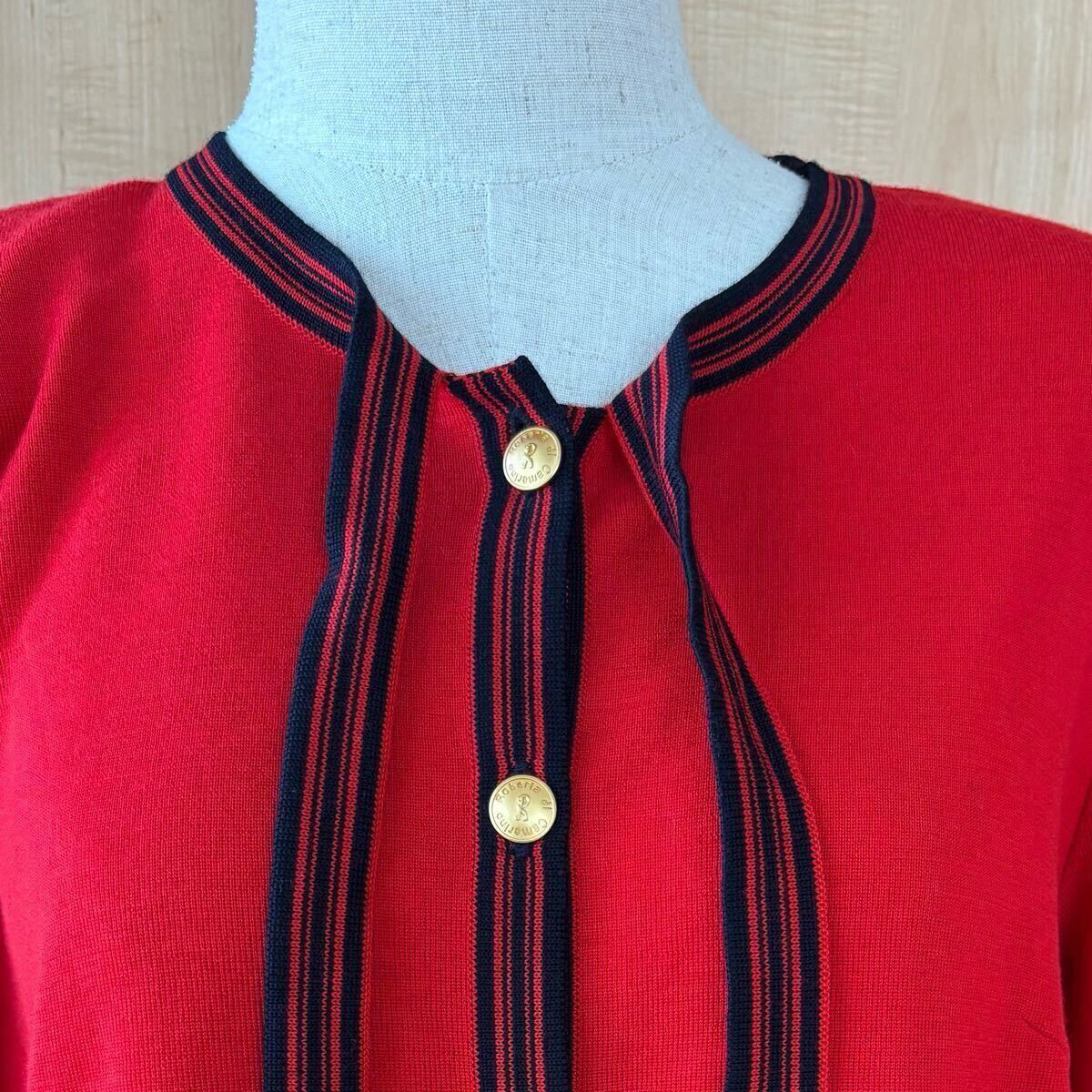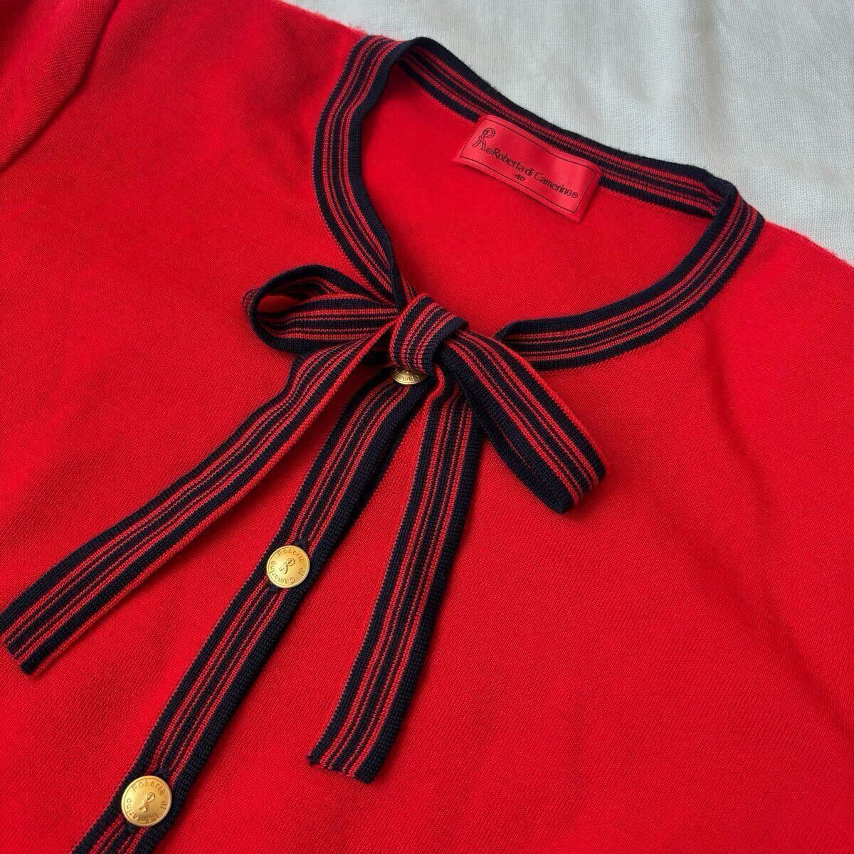 ロベルタディカメリーノ カーディガン サイズ40 ウール 赤 レッド リボン 金ボタン