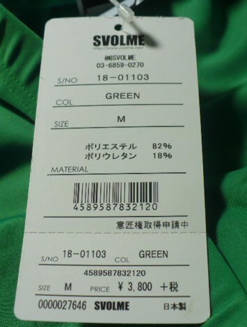 新品紙タグ付き SVOLME(スボルメ)製インナースパッツ(パンツタイプ)M 緑 定価3800円+税