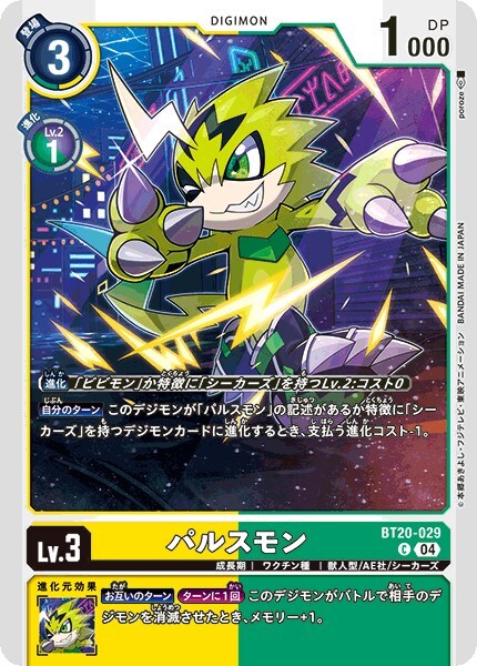 パルスモン〔C〕【黄/緑/Lv.3/BT20-029】〈OVER THE X〉 デジモンカードゲーム