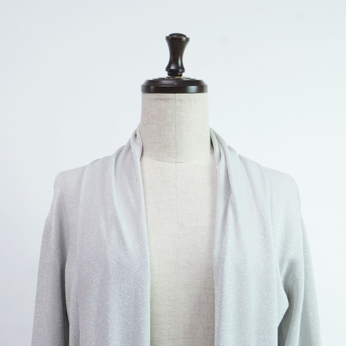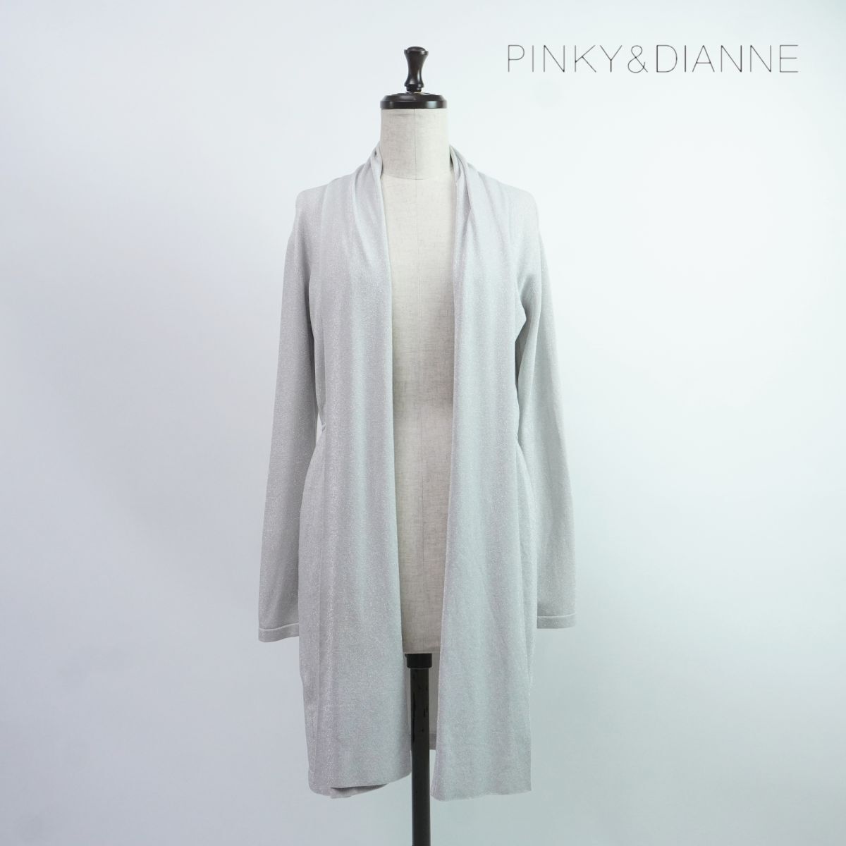 PINKY&DIANNE ピンキーアンドダイアン ラメ 前開き ロングカーディガン トップス レディース グレー シルバー サイズ38*PC481