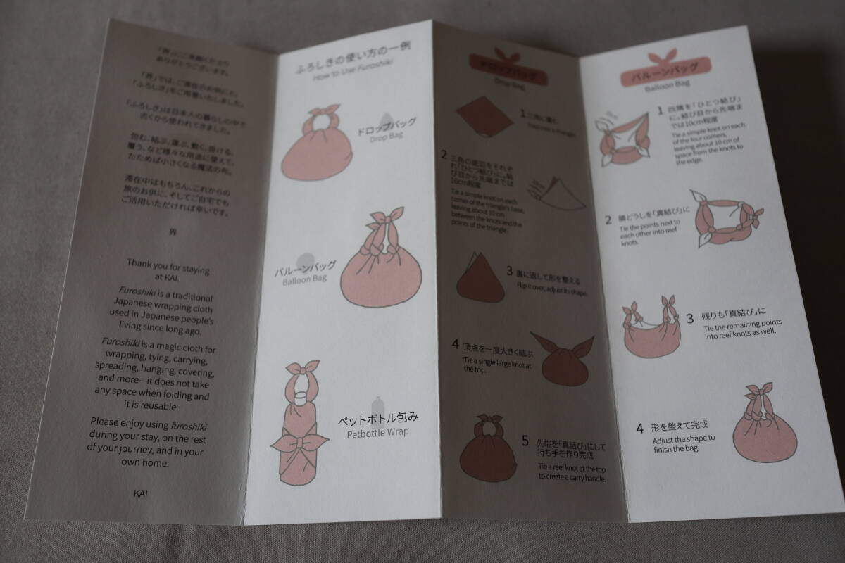 | ・しおりに使用方法が記載されており、様々に活用できる風呂敷です。 | ||||||||