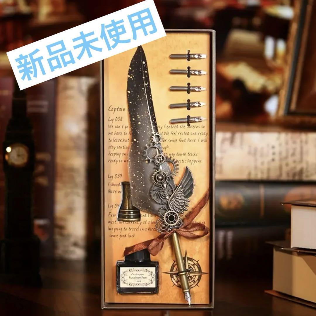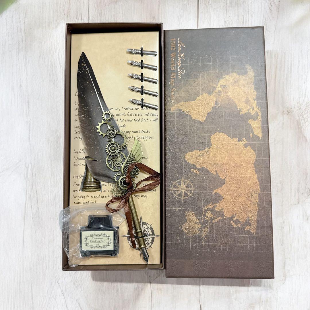 万年筆、封蝋、ワックスクイルペンを備えたギフトボックスセット。ジュバボズカリグラフィーペンとインクペンセット。メカニカルギアとスチームパンクデザインのディップペン。