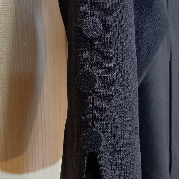 上品な5分袖のすっきりとした美しいシルエットで、袖先にはスリットとデザインボタンあり!