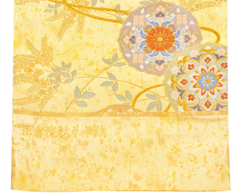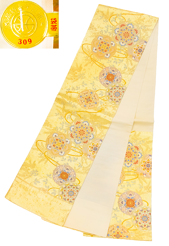 | ★品質・詳細 | ○地色 【こちらの地色は落ち着きのある金地系です。】 ○絹織物 ○新品・未仕立の特撰礼装袋帯です。 ○西陣老舗織物謹製 【証紙番号 309】(西陣メーカー証紙はあります。) ○長さ 約4.38m ○参考上代 280,000円 |