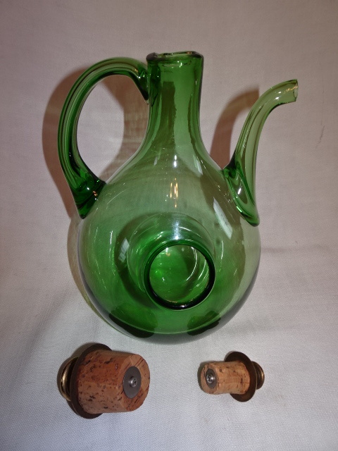 ■ガラス職人が一つ一つ手作りで仕上げた贅沢な酒器です。氷ポケット付きで、ワイン、お酒が薄まる事無く冷たさを保ちます。数年前に購入、見ては楽しんで居りました。とても涼しげな色ガラスです。中央のガラスに氷を入れワインを冷やして下さい。