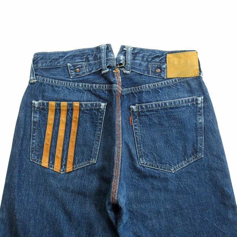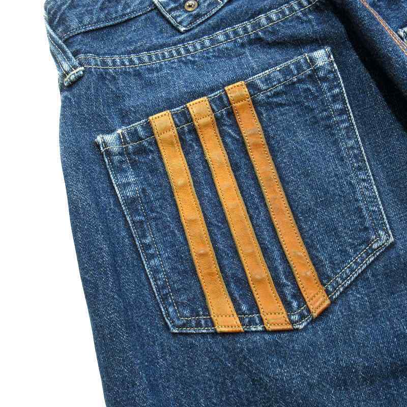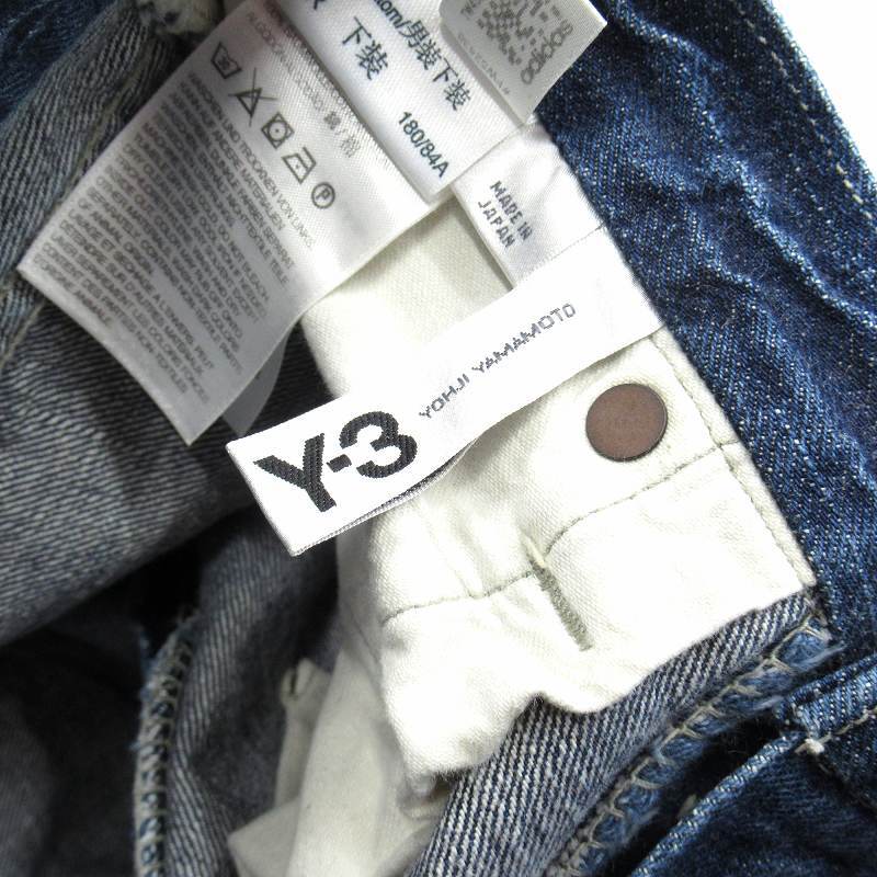 ワイスリー Y-3 ヨウジヤマモト Yohji Yamamoto スリーライン レザーパッチ デニム パンツ シンチバック 32/R インディゴブルー メンズ