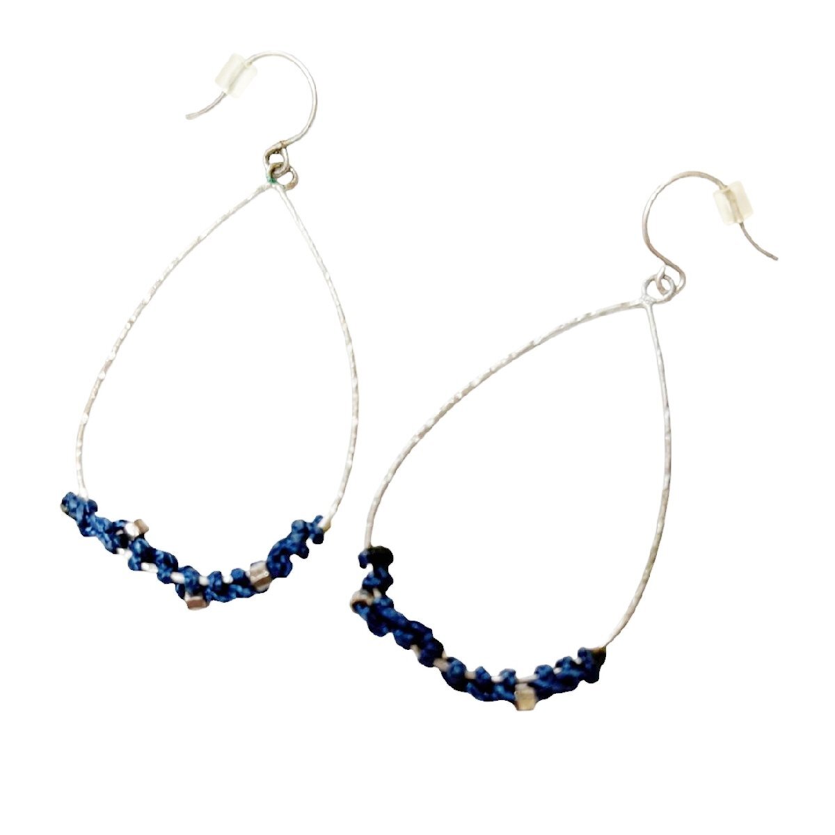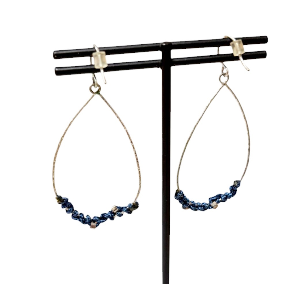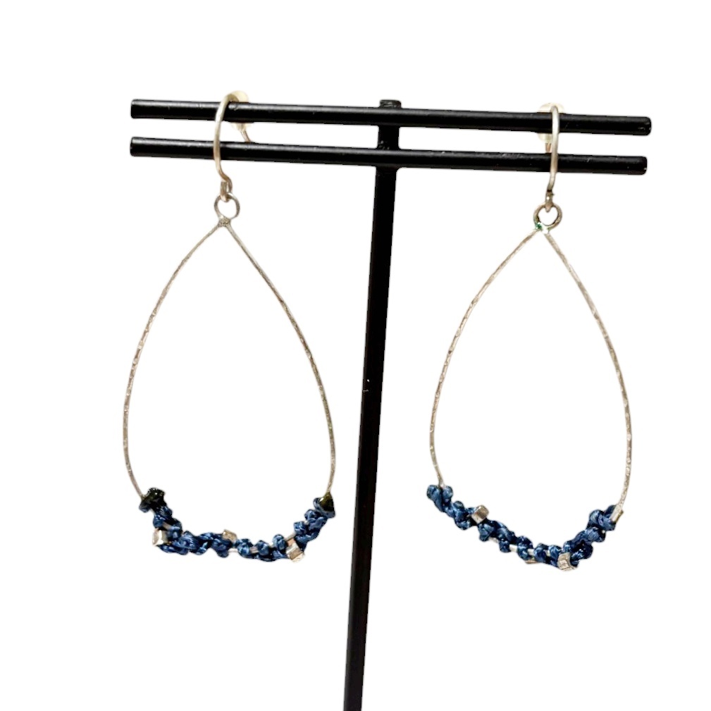 上品なシルバーのフープに、美しいラピスラズリ色の糸が巻かれており、