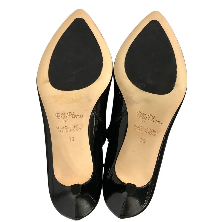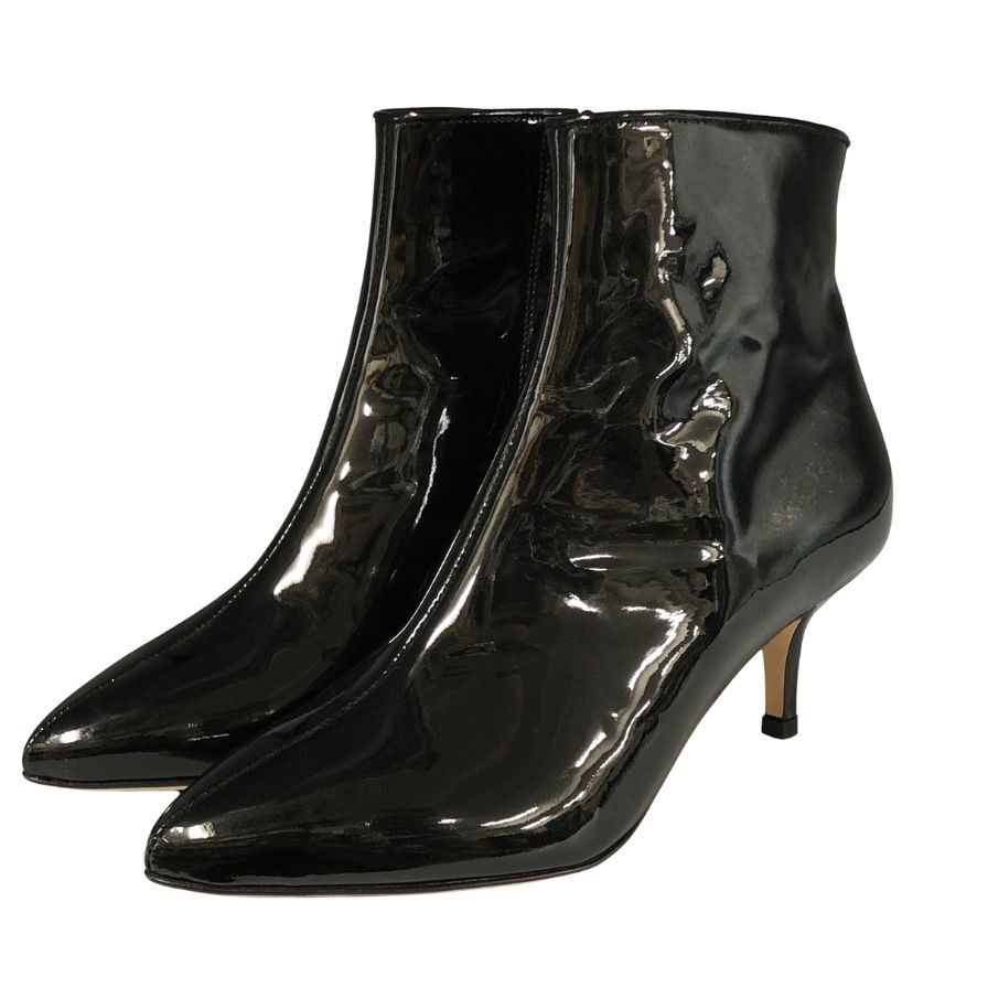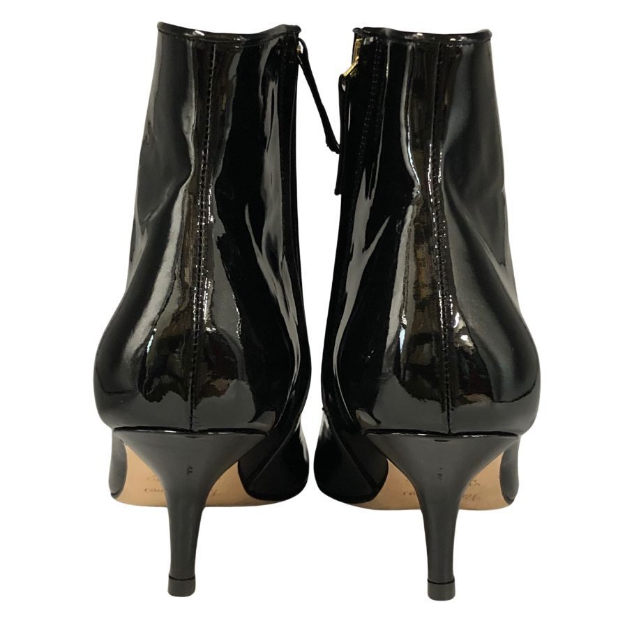 ポリープルーム エナメル ショートブーティ ゴールド金具 イタリア製 レディース サイズ36 ブラック POLLY PLUME 約22.5cm【AFC45】