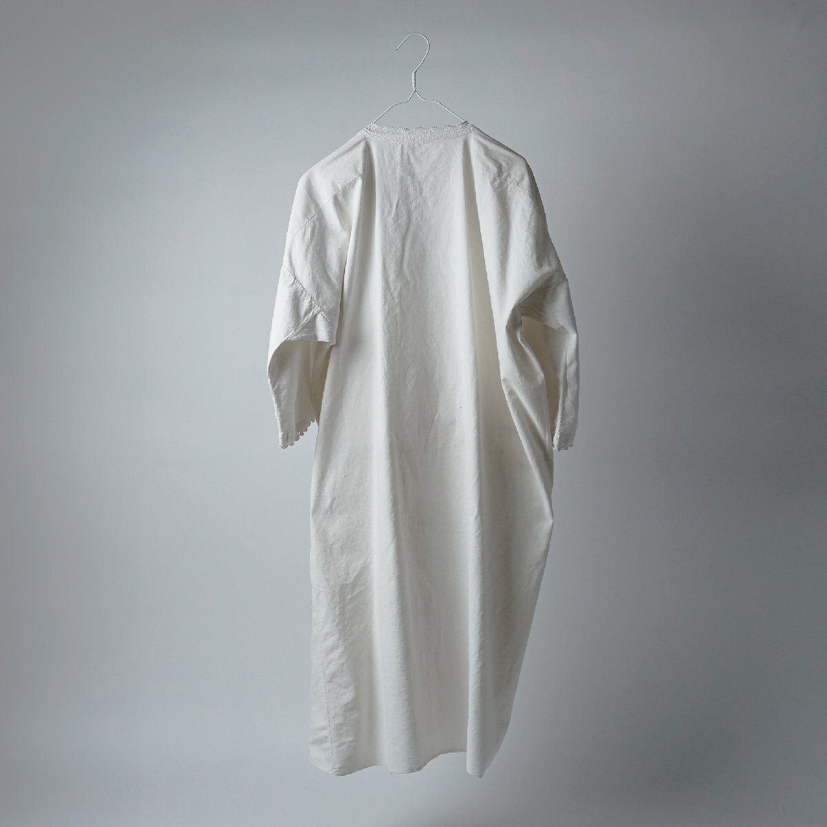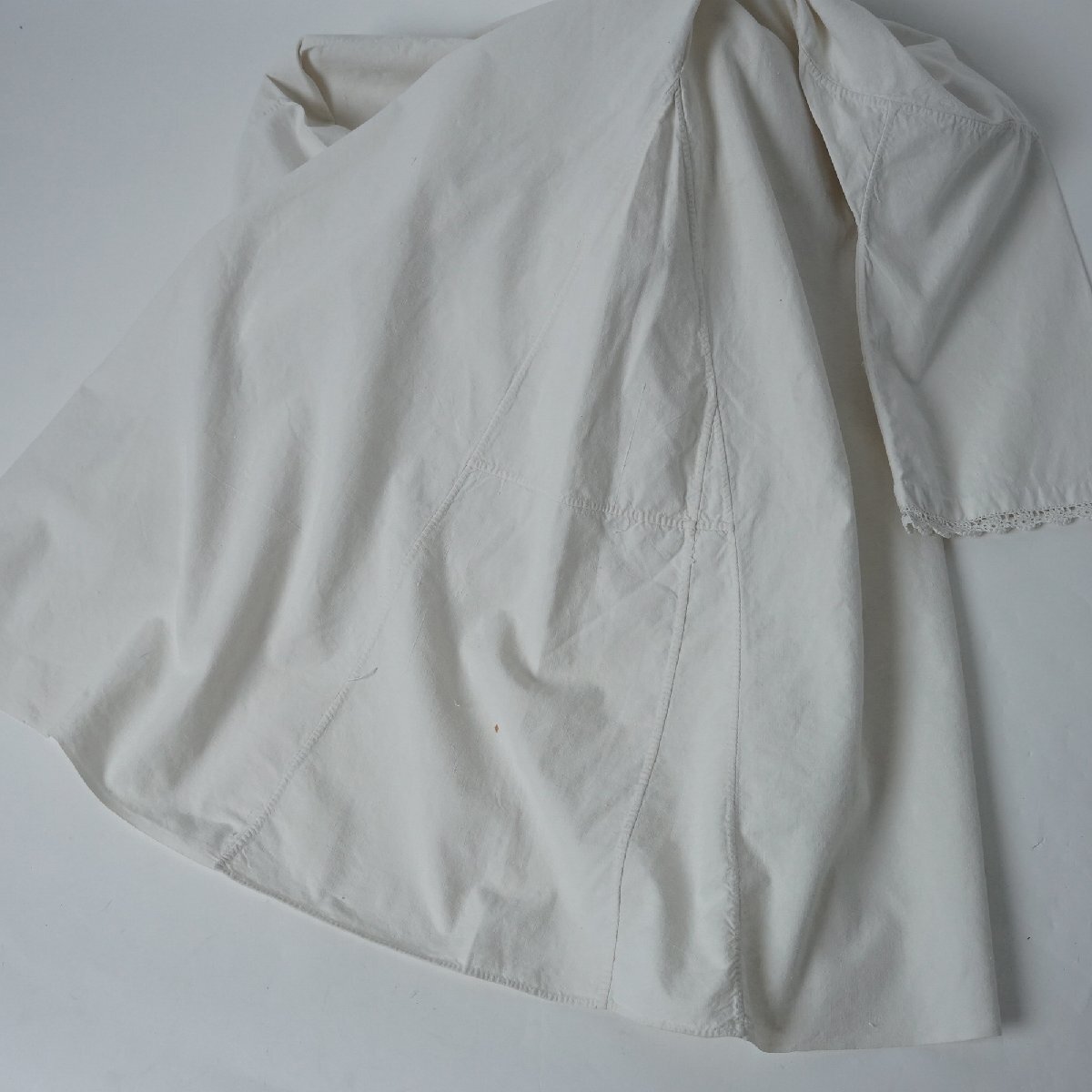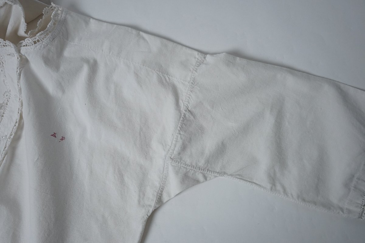 フランス アンティーク コットンリネン ワンピース スモックシャツ レース[E607]