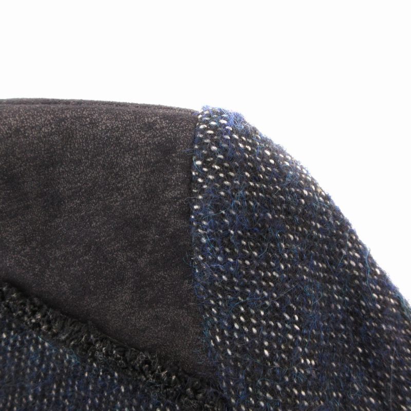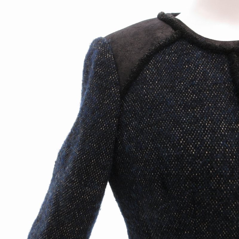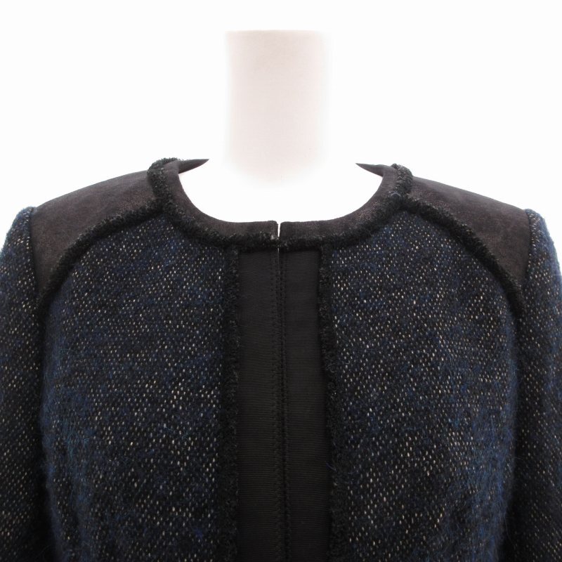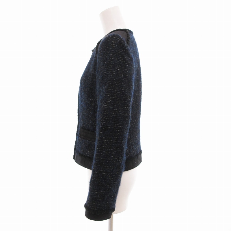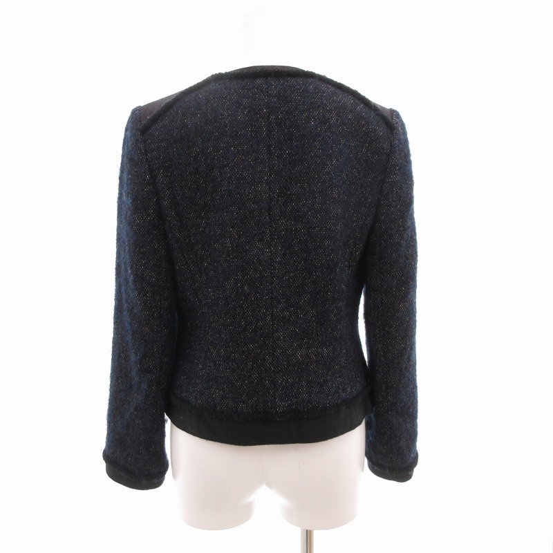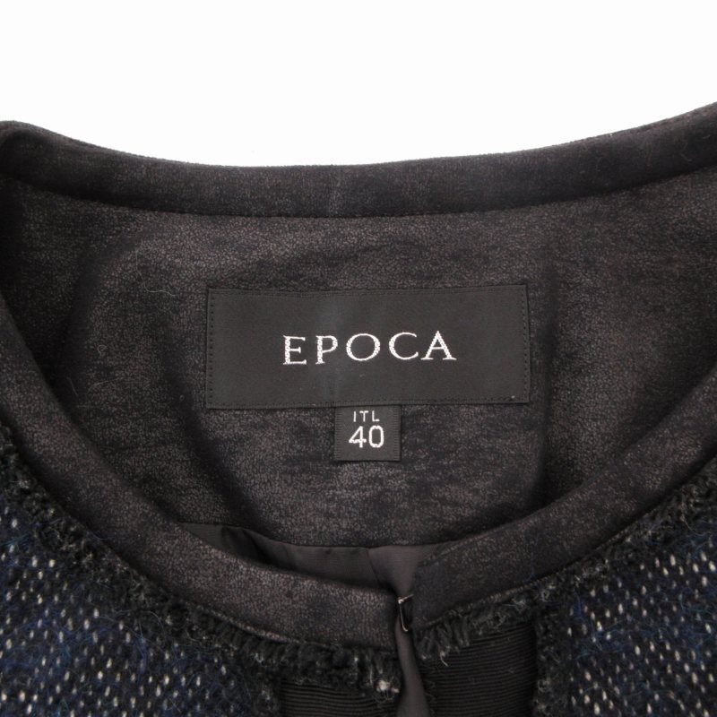 エポカ EPOCA ツイードノーカラージャケット フリンジ アルパカ混 モヘア混 40 紺 ネイビー 黒 ブラック /GV レディース