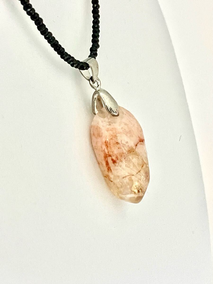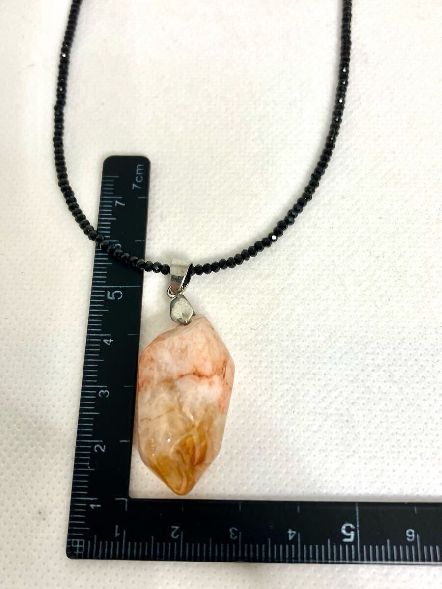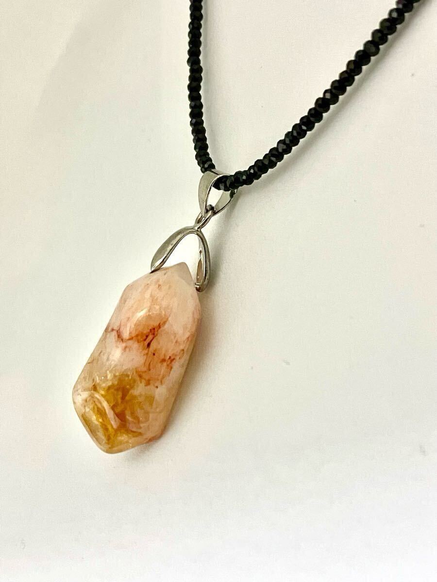 新品のとても綺麗な個性のあるシトリントパーズのペンダントトップをブラックスピネルに通したネックレスです。