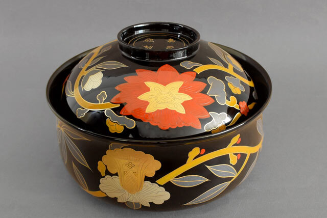 九代 象彦 長寛写 砂金袋形 喰籠 菓子器 木に漆