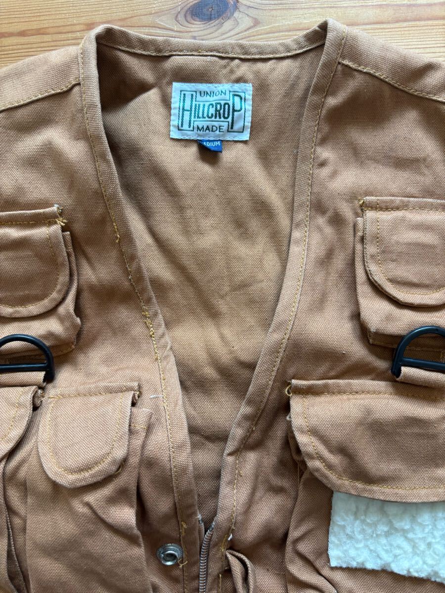 たしか30年位前に購入しほとんど使ってなかったベストです。詳細は忘れましたが、状態は特に問題ないかと思います。商品名やカラーに間違えなどあるかもしれませんので、詳細や状態は画像にてご確認ください。気づかない傷みや汚れあるかもしれません。気になる点はご質問ください。