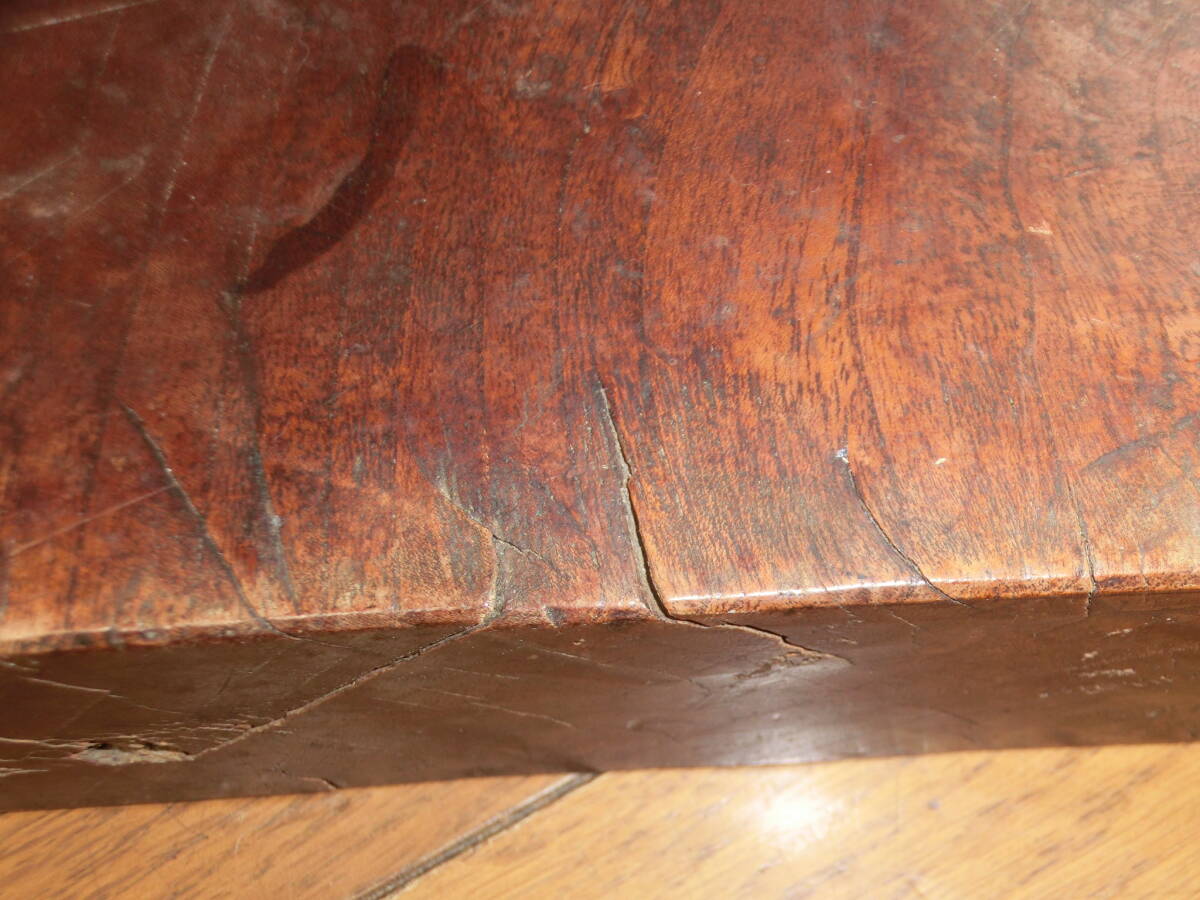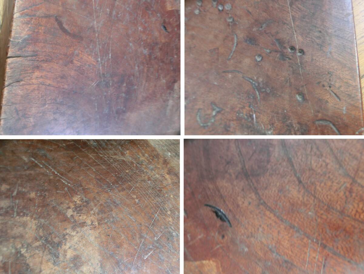 表は経年の使用により煤けて黒ずんでいます。ヒビ、釘跡や裏面に碁盤の目状の格子刻みが有ります。骨董品です多少の擦れ、汚れはご容赦ください。画像にてご確認、ご納得の上で入札をお願いいします。