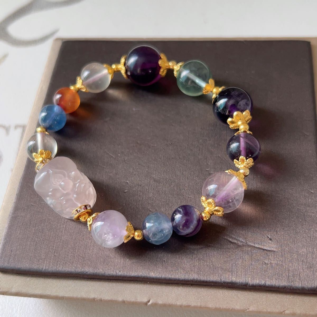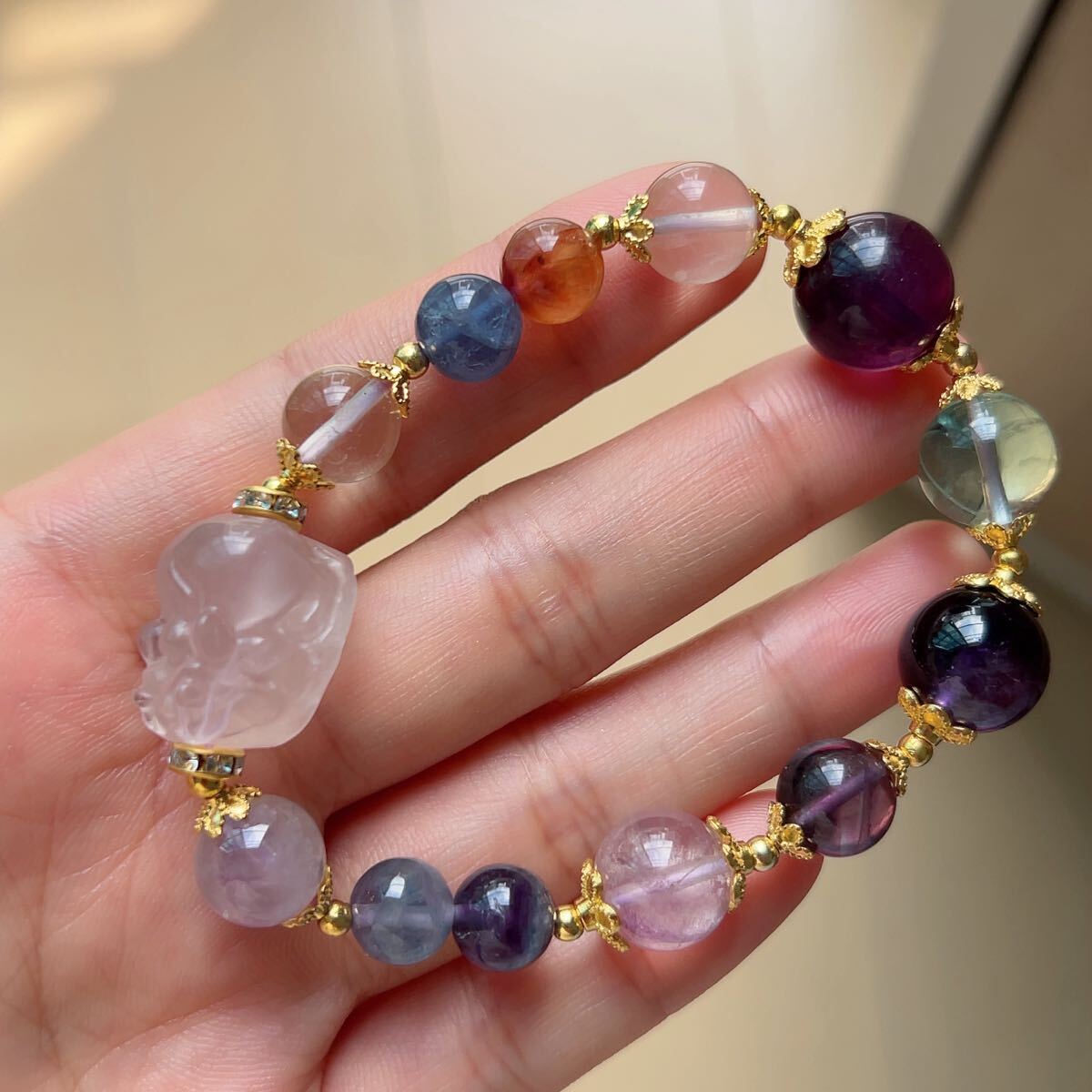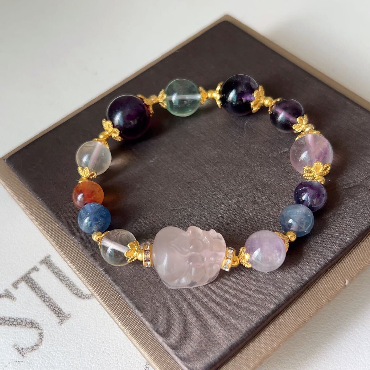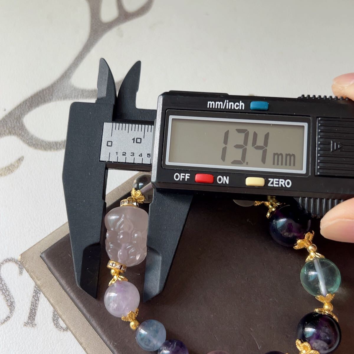 ◇フローライト◇螢石◇貔貅(ヒキュウ)形 1粒◇ブレスレット◇パワーストーン◇天然石◇巾着袋付き◇プレゼントにも036B611