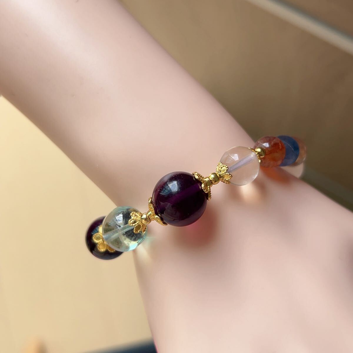 フローライトはトルマリンに次いで豊富なカラーバリエーションを持つ天然石。その色彩は、透明・紫・ピンク・緑・青・黄色など様々で、中には二色以上が層状に交じり合ったバイカラー(レインボーフローライトとも呼ばれる)もあり、とても幻想的です。パワーストーンにおいて色の持つ影響力はとても大きいもの。フローライトも石の色によって、少しずつ違う役割を担っています。