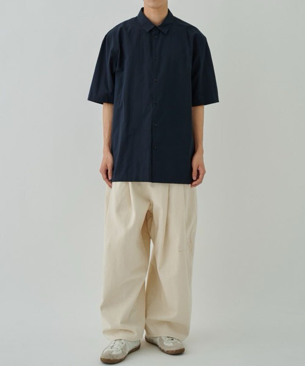 デザイン程よいオーバーサイズなシルエットが特徴の半袖シャツ。