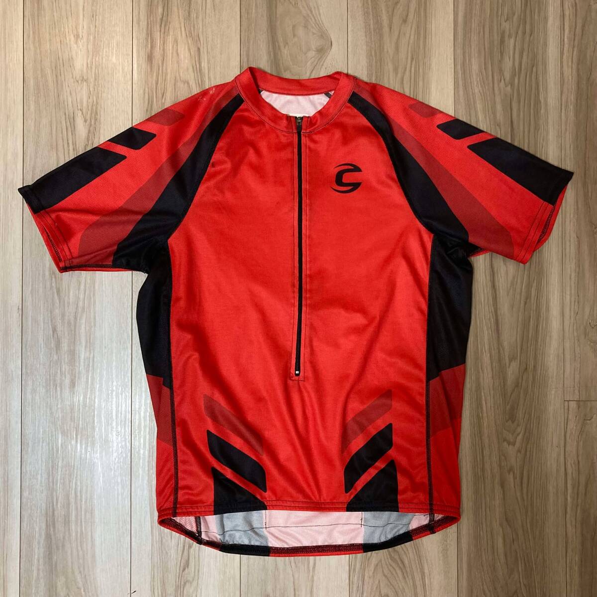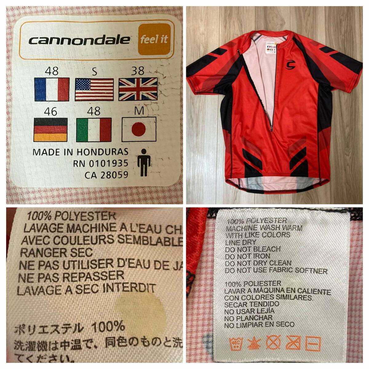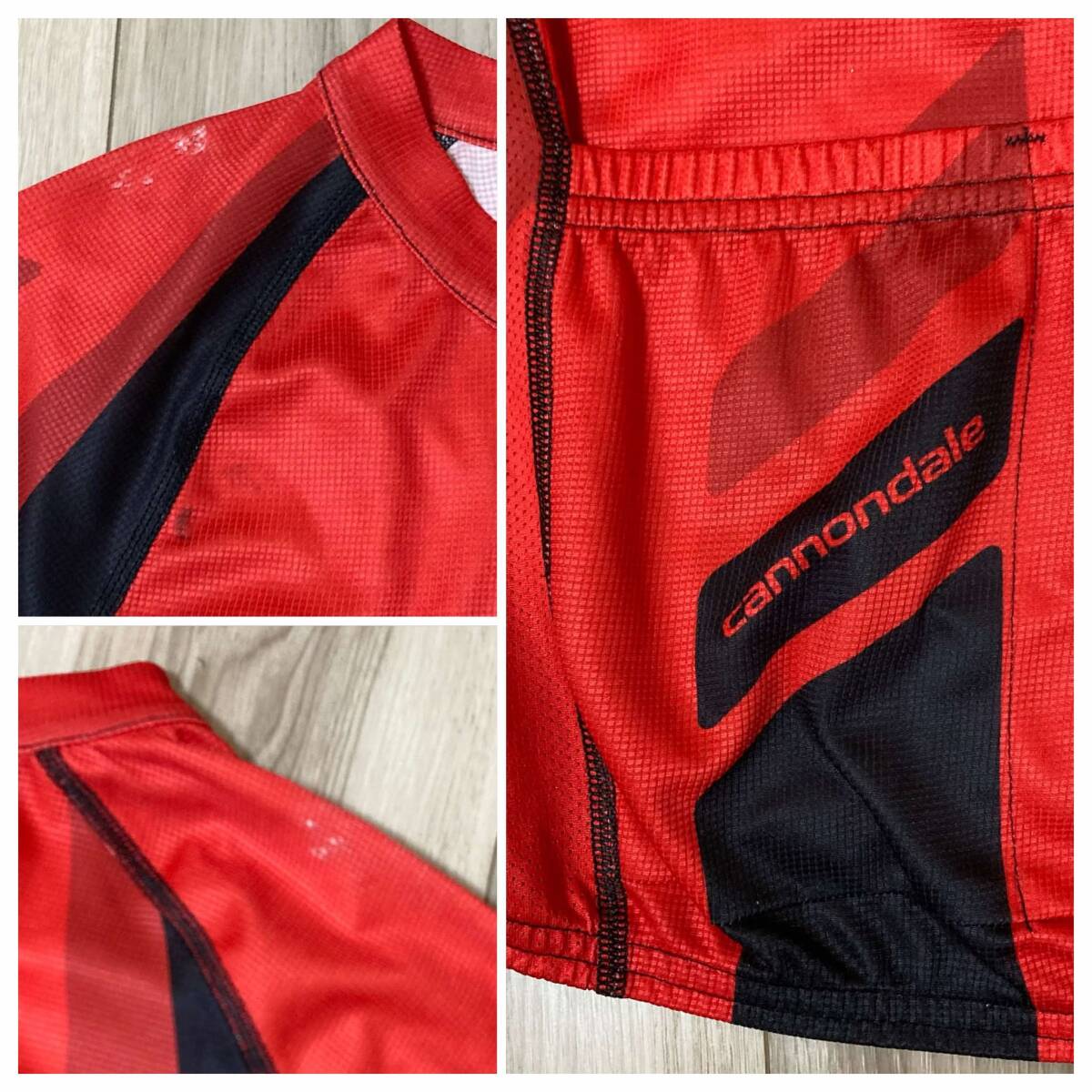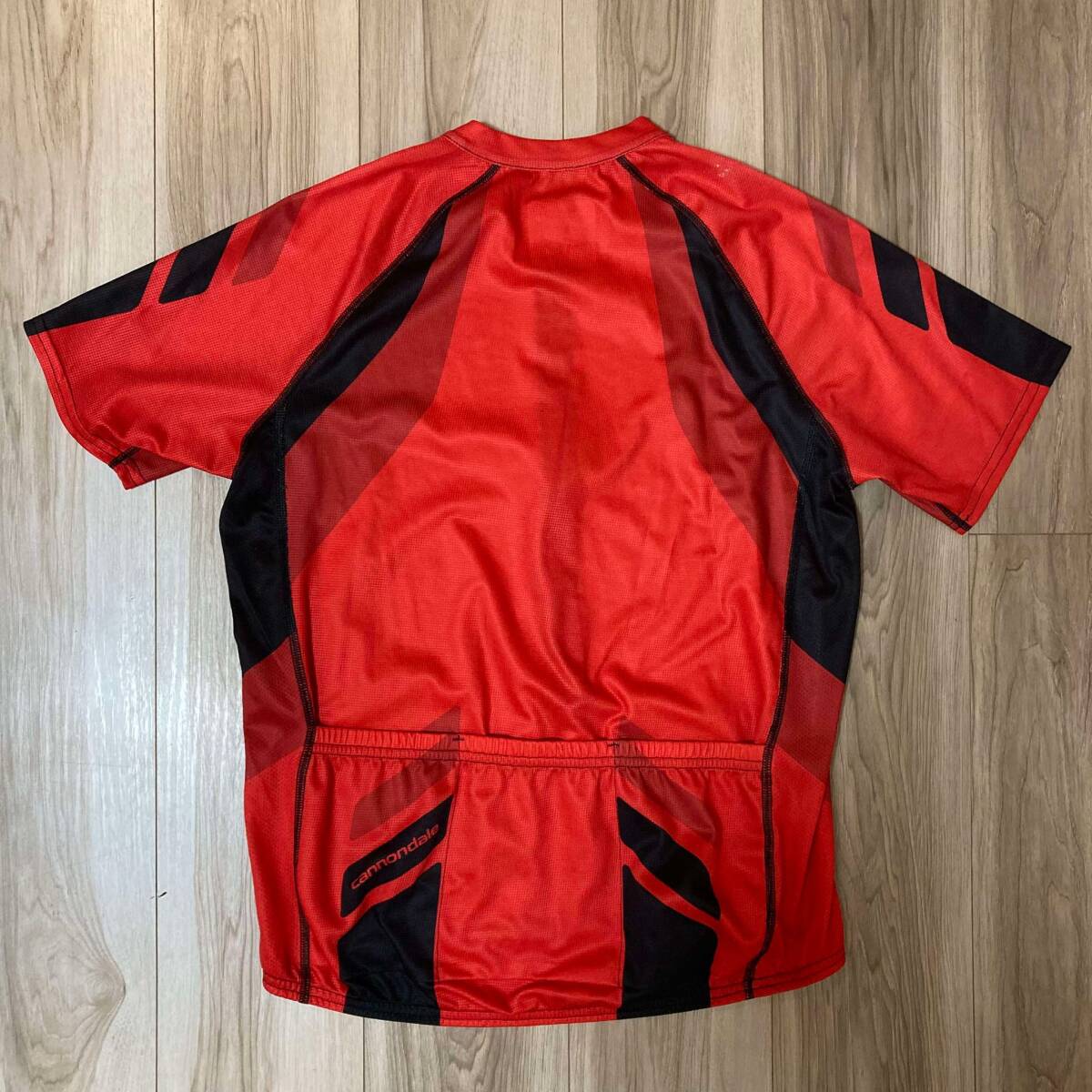 送料230★正規 キャノンデール Mサイズ メンズ 半袖 サイクルジャージ Cannondale マーク&ロゴ 速乾 3ポケット 中古 良質品 n423 レッド系