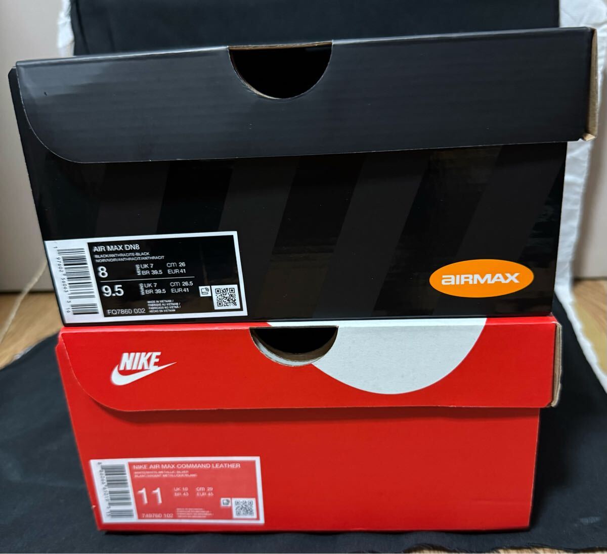 NIKEのスニーカーAIR MAX Dn8(メンズ26cm)の空箱とNIKEのAIR MAX COMMAND(29cm)の赤箱2のつのセットとなります。