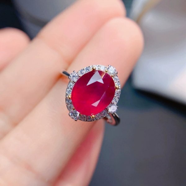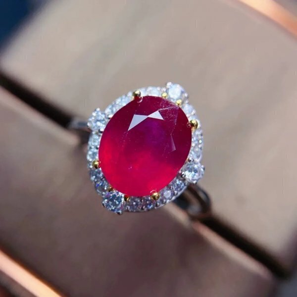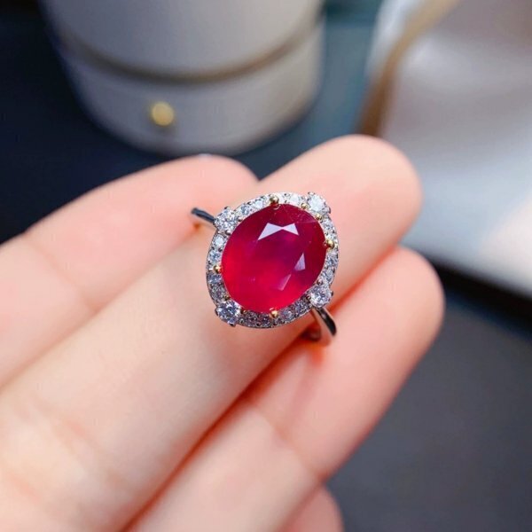 結婚、婚約指輪、925シルバー、8 * 10mm用の天然加熱 ruby Ring 証明書