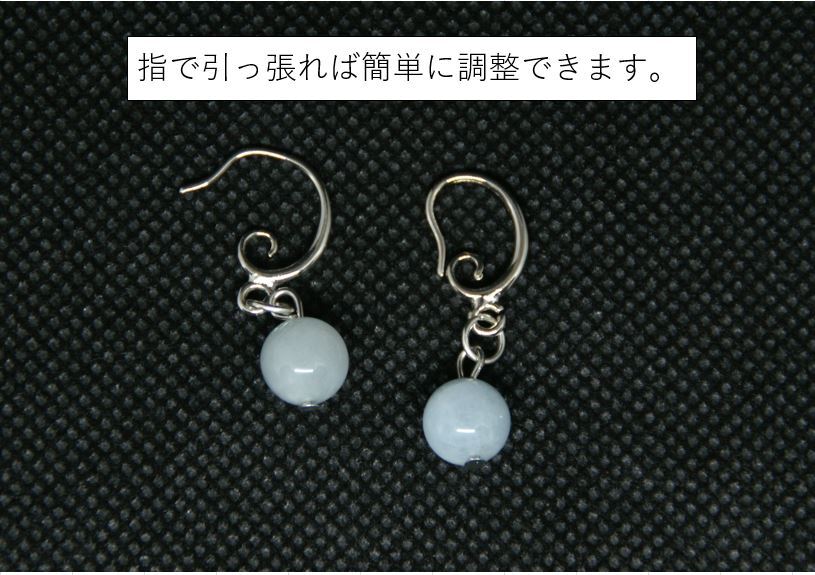 【天然石】アクアマリン ピアス(8mm玉/調整可能フック)
