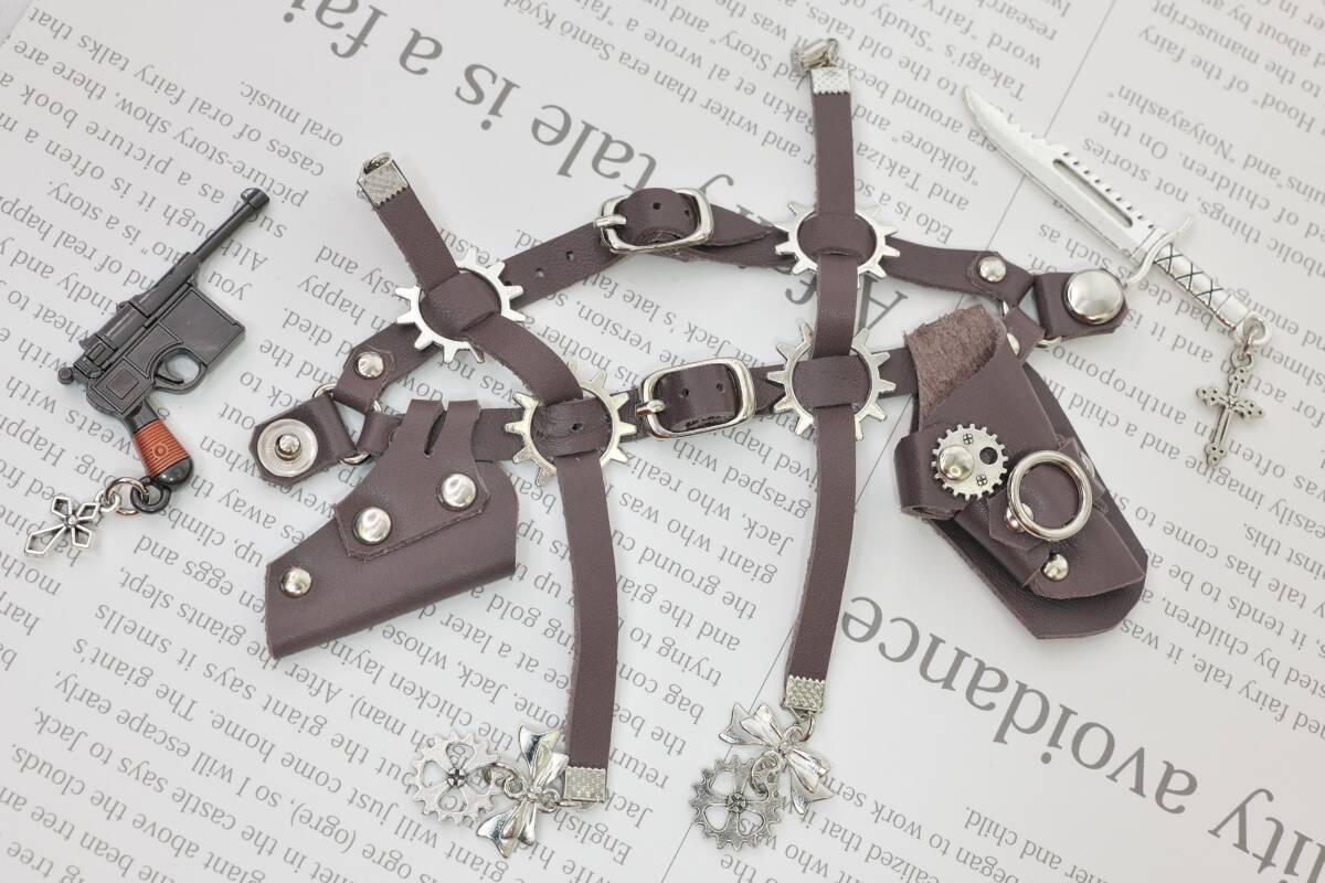| ご閲覧ありがとうございます。千葉DOLL工房と申します。ヤフーオークションの他にも、イベント販売、委託販売、ネット販売など行っております。 【商品説明】 1/6ドール版のTinyFox、imomo、時節姫、萌梦工厂、Evantasy〈エヴァンタシー〉、DOLLCE Yummy! Sweets Doll等に対応する胸部ベルト型のガンベルトです。銃やナイフが付属します。 【セット内容】 ベルト本体、銃、ナイフ〈銀色の場合は大きいのが1本、古美金の場合は小さいのが2本〉 説明書などは付属しませんが、装着方法などは動画で詳細させて頂いております↓ https://youtu.be/pE0Z2EIkF1o 他にも写真や詳細をブログに掲載させて頂いております↓ https://tibadoll.blog.fc2.com/blog-entry-1207.html 他、ご不明な点等ございましたら、お気軽にご連絡ください。 ツイッター @tibadollkoubou お問い合わせはツイッターのDMなどでも行えます。 このアイテムと組み合わせられそうなアイテムなどもイベントやショップで販売しておりますのでもし宜しければご利用ください。 ショップURL↓ https://tibadoll.cart.fc2.com/ ※上記の物のみの出品です。写真のドール本体やウイッグ、ドレス、追加アーマーパーツ、マントなどに使用された布などの衣装は付属しません。 主な素材は本革、金色部分は金具部分は真鍮、または真鍮メッキなど。銀色部分はニッケルメッキなどです。ガンベルトなどの場合、銃などは市販の物を使用しております。 【お取引のご連絡、お支払いについて】 ご落札後のご連絡は「取引ナビ」、お支払い方法はYahoo!かんたん決済です。 誠に勝手ながら、オークション終了後、2日以内のご連絡及び、4日以内のお支払いをお願いいたします。 上記期日をお守り頂けない場合は、落札者様都合でのキャンセルとさせていただく場合がございますので、予めご了承ください。 【発送方法・送料】 ヤマト運輸のメール便、もしくは大きい物の場合ヤフネコ宅急便〈コンパクト〉で配送させて頂きます。対象は国内のみです。 送料は当工房が負担させて頂きます。 ご入金を確認後、1~2日以内の発送となります。 ※厳重に梱包してお送りしますが、お届け時に発生する問題については責任を負いかねますのでご了承ください 【返品】 お客様都合での返品などは受け付けておりませんが、到着時点でパーツが壊れていたなど御座いましたら修理、又は交換パーツをお送りさせて頂きますので、お早めにご相談ください。(十分気を付けておりますが、手作り品ですので一般的な工業製品ほどの精度が無い部分もあるかもしれません。又、革部分は天然素材ですので小さな傷や色のムラは発生しますし、金属板などの表面の細かい傷や酸化被膜なども制作中に付いてしまう物ですので補償対象外とさせて頂きますので予めご了承下さい。) 【注意事項】 金属板はロール状態で納入されることもありますので、表面に擦れなどが元々存在する場合が御座います。又、十分に気を付けておりますが、製造工程で構造的に作品の表面などに細かい傷か付いてしまう部分がございます〈特に金属板パーツの端の処理などでハンマーを使う為〉、予めご了承下さい。 ・ソフビドールの色移り対策の為、鎧や服の裏地を色の薄い革や布で覆っていますが、完全に色移りが防げるわけではございませんので、装着の際はお気をつけください。 ・お使いのモニターによりお色が若干違って見える場合があると思います。 ・申し訳ございませんが評価の悪い方の入札はお控え下さい。 入札があった場合、入札取り消しをさせて頂く事もございますので、予めご了承下さい。 ・商品の写真は装着時のイメージをし易いよう、ドールに着せて映しておりますが、商品には、ドール本体や衣装、小物、縫いぐるみなどは付属いたしません。 ・きつく紐やベルトを締めすぎますと、ドールや、装備自体の破損の原因に成りえますのでご注意ください。 ・ドールの素肌に長時間装着したままにしておりますと、布製の衣装と同様に、革や金属の錆部分から色移りの可能性がございますのでご注意下さい。 ・当方には喫煙者はおりません。動物なども飼っておりません。 【メンテナンス】 ・ネジ止め、組みネジ使用の可動部分などは使用しているうちにネジが緩む事もございますので定期的に絞め直してください。〈但し、あまり強く絞め直すと破損の原因となりますのでご注意ください〉 ・金属部分の端の部分の処理をしておりますが、尖ったデザインの物の先端などには注意してください。また造作部分以外の、細かい市販の金属部品の尖っている先端も危険ですのでご注意下さい。 ・金属部分にはアルミや真鍮板、市販の金具などを使用しておりますが、手の脂などで光沢が落ちたり、時間が経つにつれ酸化被膜や錆が付きますが、市販の金属磨きなどをご使用いただければある程度は改善する事が出来ます。ホームセンターなどで販売されておりますピカールなどが特に有効です。 当製品により、お客様及び第三者に生じた損