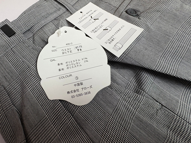 | サイズ | ウエスト67-73 また下78※裾未処理 |