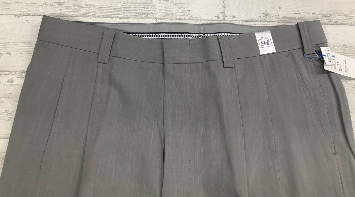 新品未使用激安処分★ウエスト94cm  グレー?ベージュ?っぽい無地感スラックス ポリエステル100% ツータック スラックス★