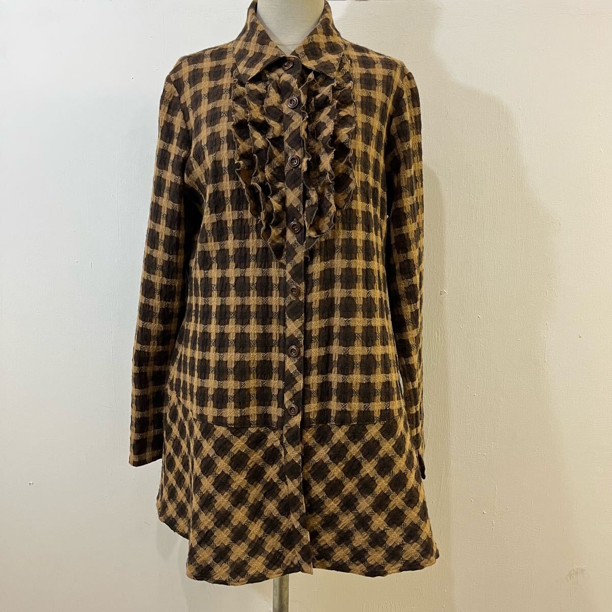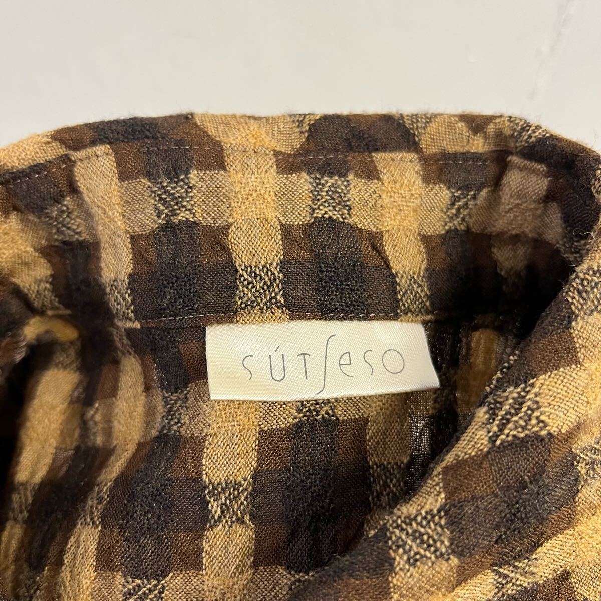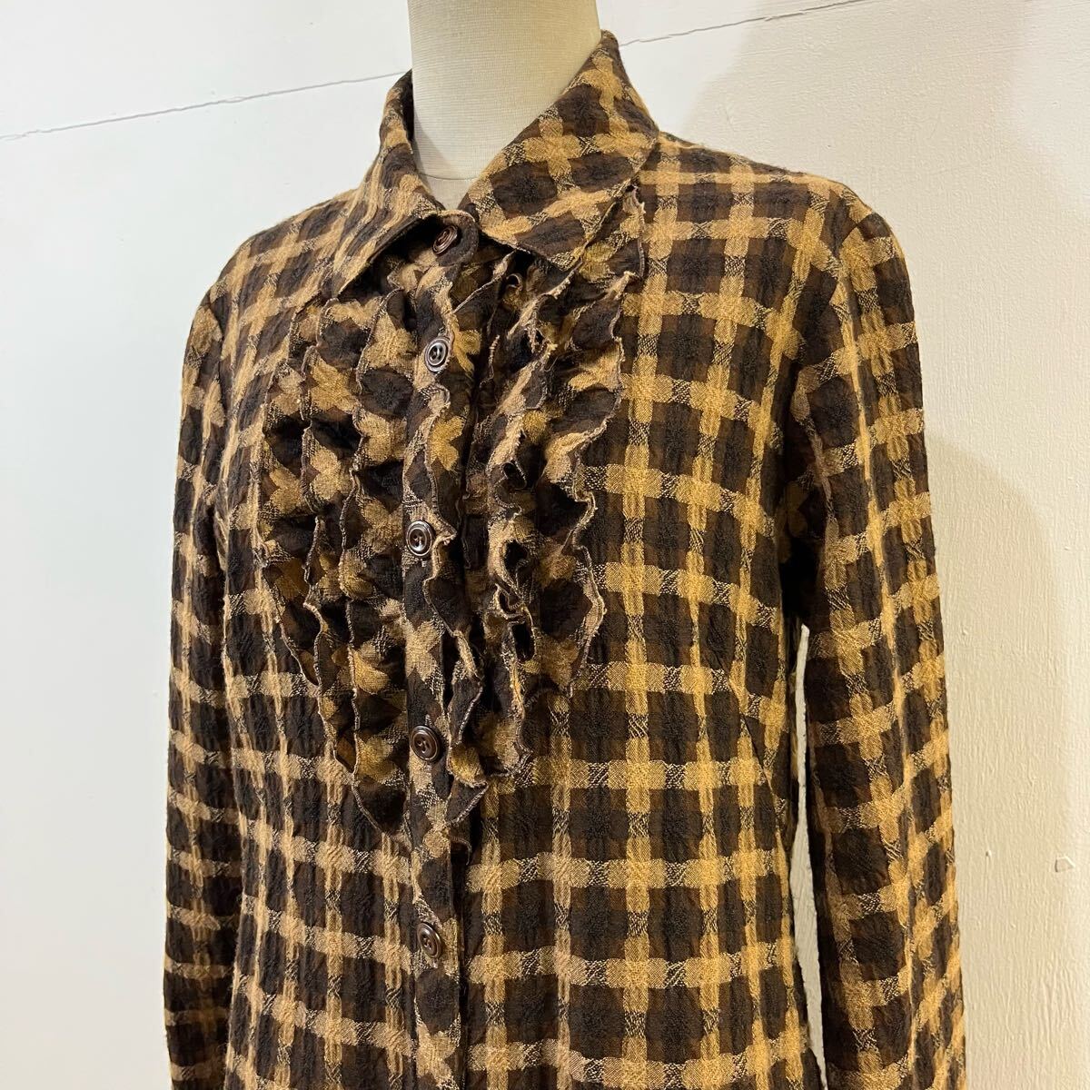 SUTSESO フリルシャツ デザインシャツ チェック柄 総柄シャツ ブラウス リボン ウールシャツ 希少 上質 スチェッソ【送料一律/同梱可能】Kの出品です。