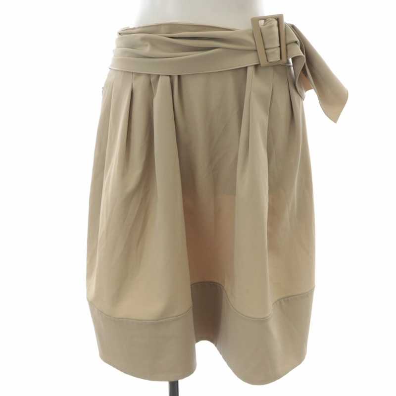 フォクシーニューヨーク FOXEY NEW YORK フレアスカート ベルト タック ひざ丈 40 M ベージュ /DK ■PN レディース