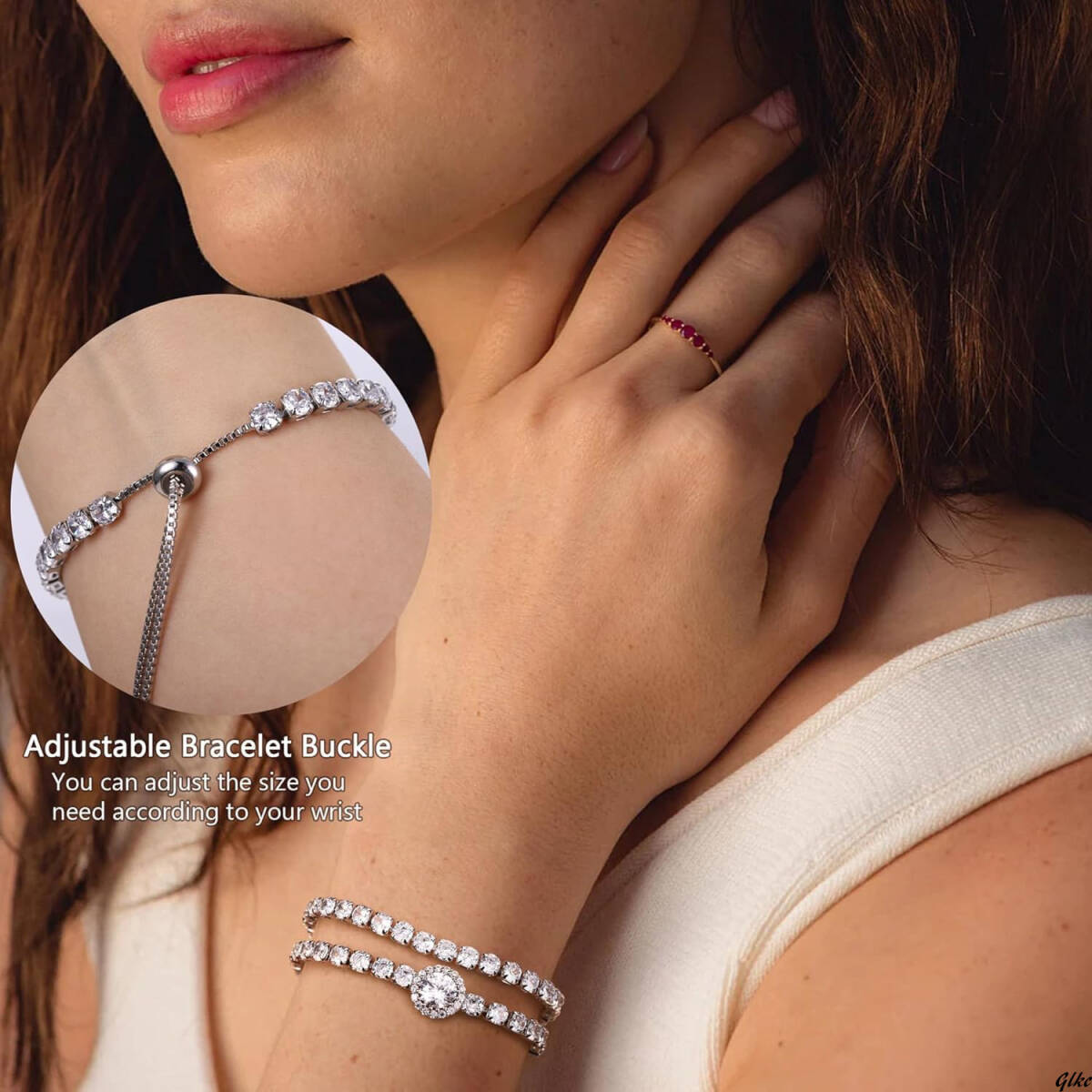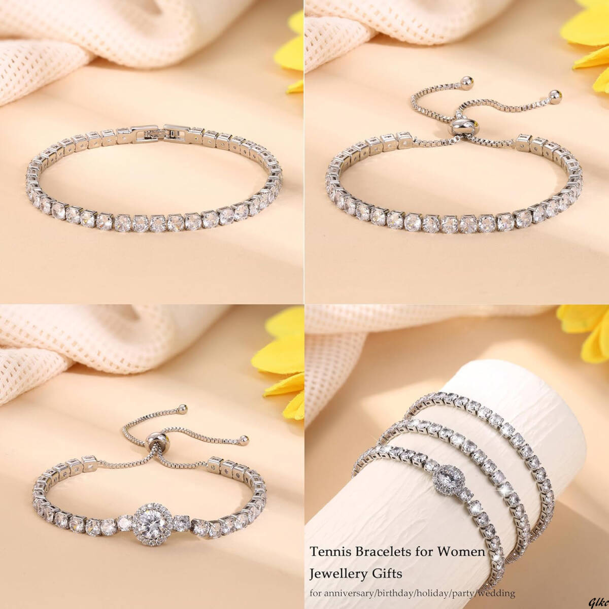 このブレスレットは、シンプルでありながら洗練されたデザインが特徴で、ジルコニアの輝きが腕元を華やかに