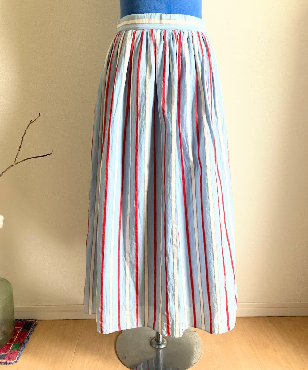 送料無料!BEAUTY & YOUTH UNITED ARROWS ビューティーアンドユース 3色ストライプギャザーロングスカート/トリコロール/マリン/IENA/BEAMS
