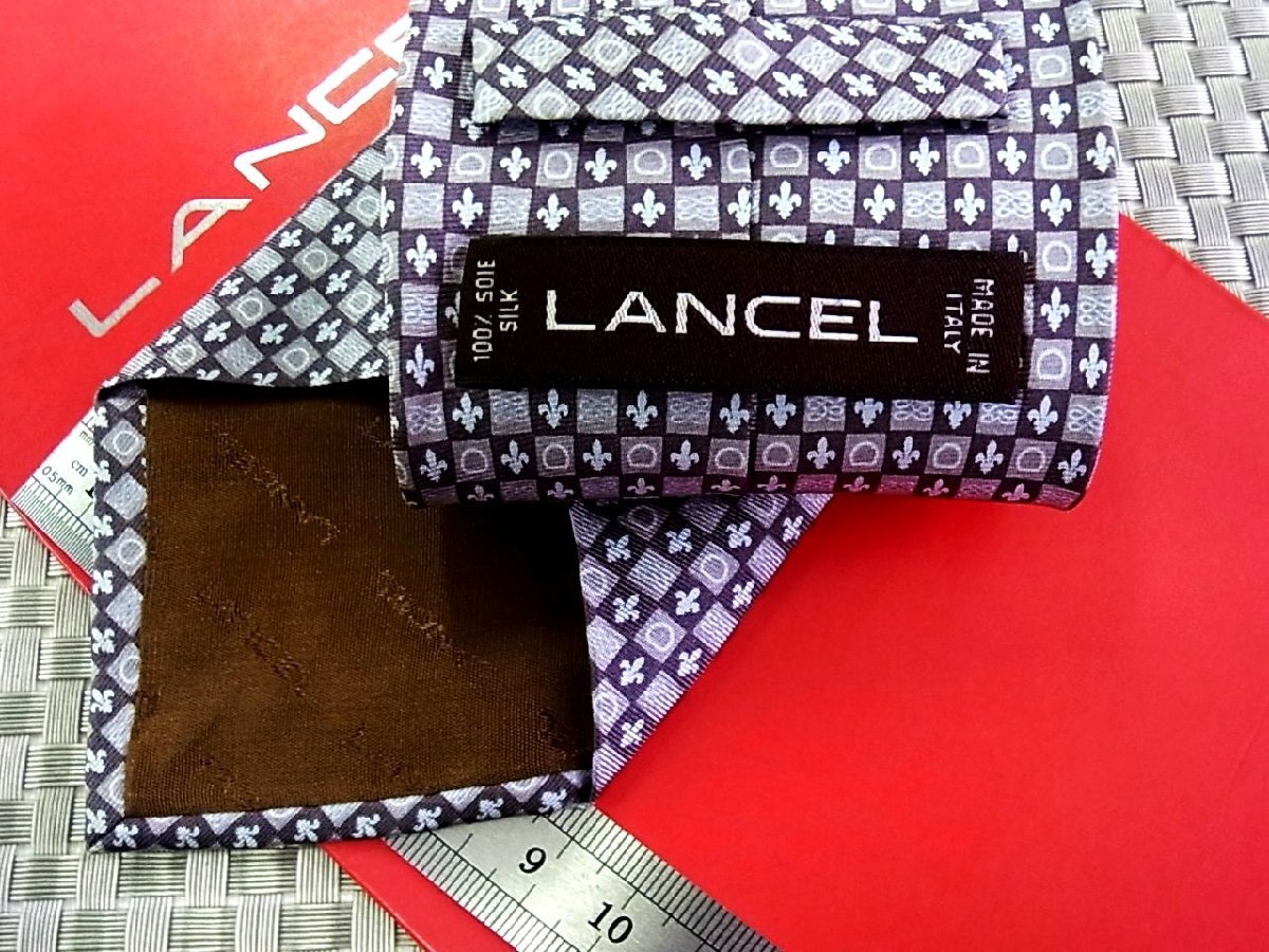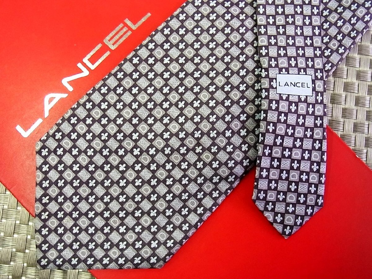 ♪38395C♪良品【百合の紋章 スクエア 柄】ランセル【LANCEL】ネクタイ