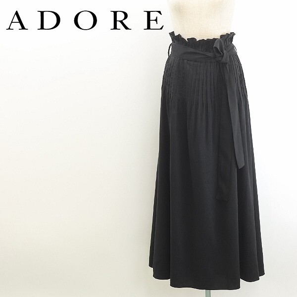 | ◆ADORE アドーア リネン ストレッチ リボンベルト付 ギャザー ロング スカート 黒 ブラック 38 | |