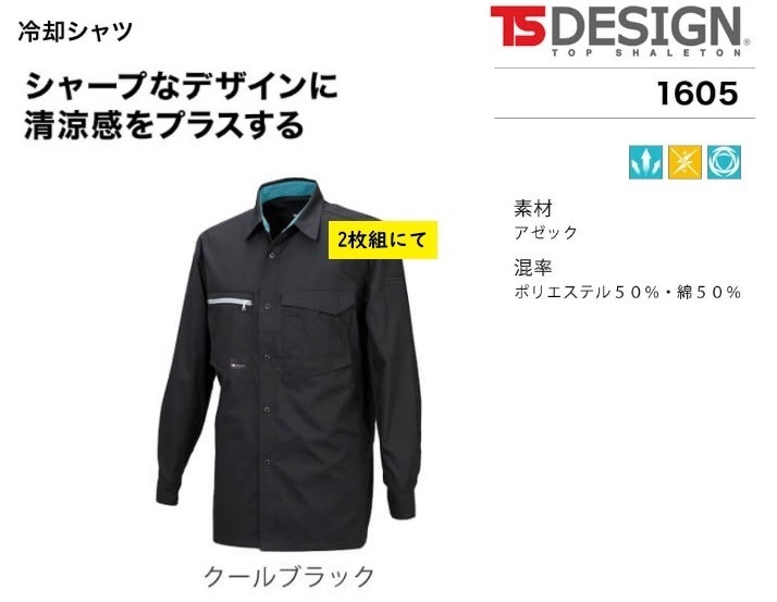 ビックイナバ特価◆TSDESIGN 1605[春夏]冷却長袖シャツ【95クールブラック・3Lサイズ】定価1枚9460円・通気性抜群の品、2枚即決2980円