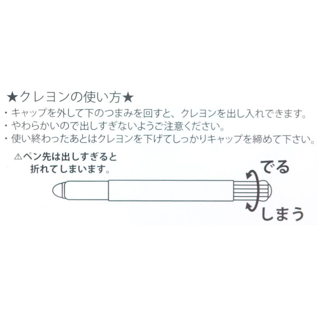 ペン先部分がしまえるクレヨンペン 大人気アニメ[クレヨンしんちゃん]グッズにまたまた可愛いnewアイテム登場こちらはペン先部分がクルっとしまえる[クレヨンペン12色セット]お子様のお絵描きにぴったりカラーラインナップは[あか/だいだい/きいろ/ももいろ/うすだいだい/むらさき/みずいろ/あお/みどり/きみどり/くろ/ちゃいろ]ほかにもいろいろあるのでお気に入りを揃えてくださいパッケージサイズ:約200x175x25mm