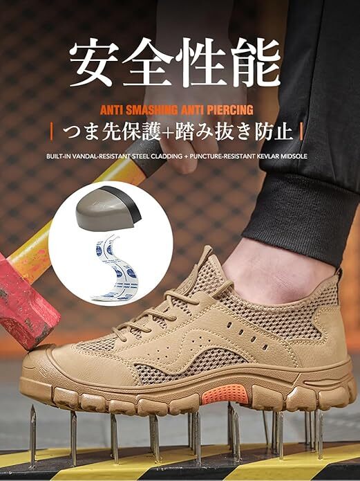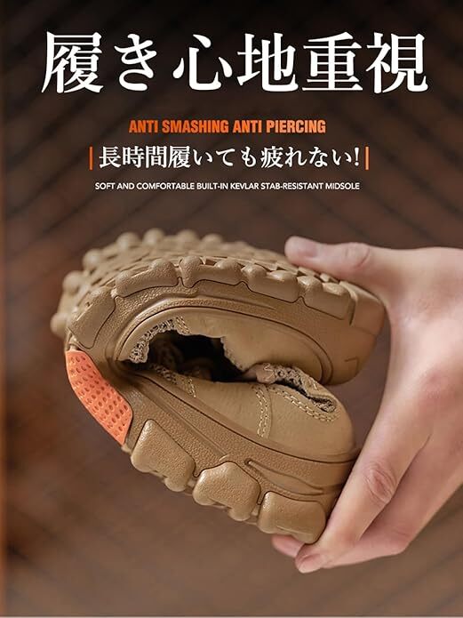 【安全が第一!】鋼製先芯入りで、重量物の衝撃から足を守ることができます。弊店の作業靴はケブラー中底を採用し、鋭い釘が刺さってもソールを貫通することはありません。