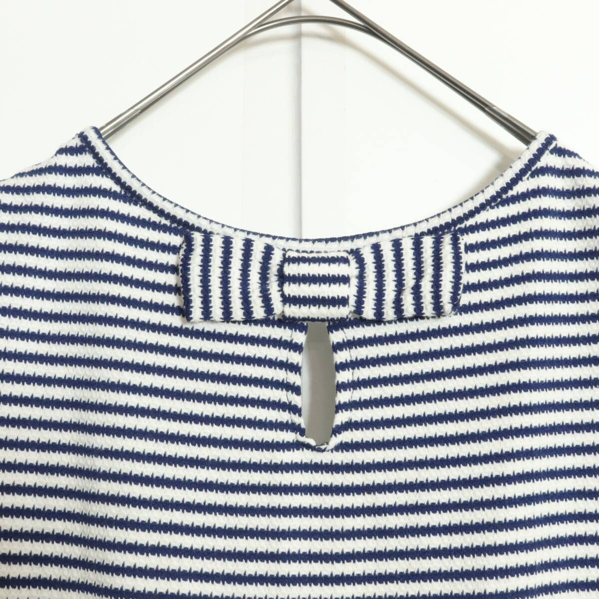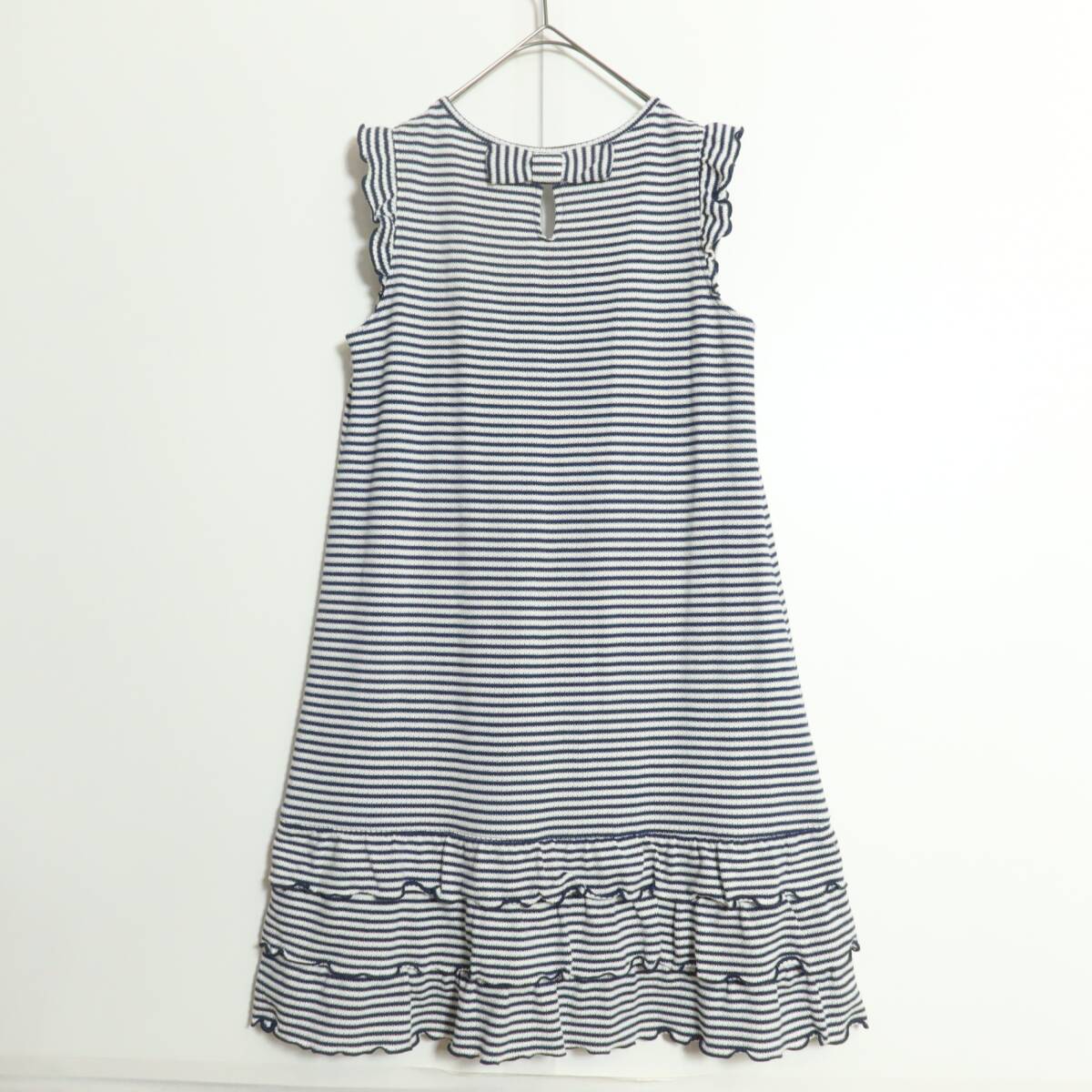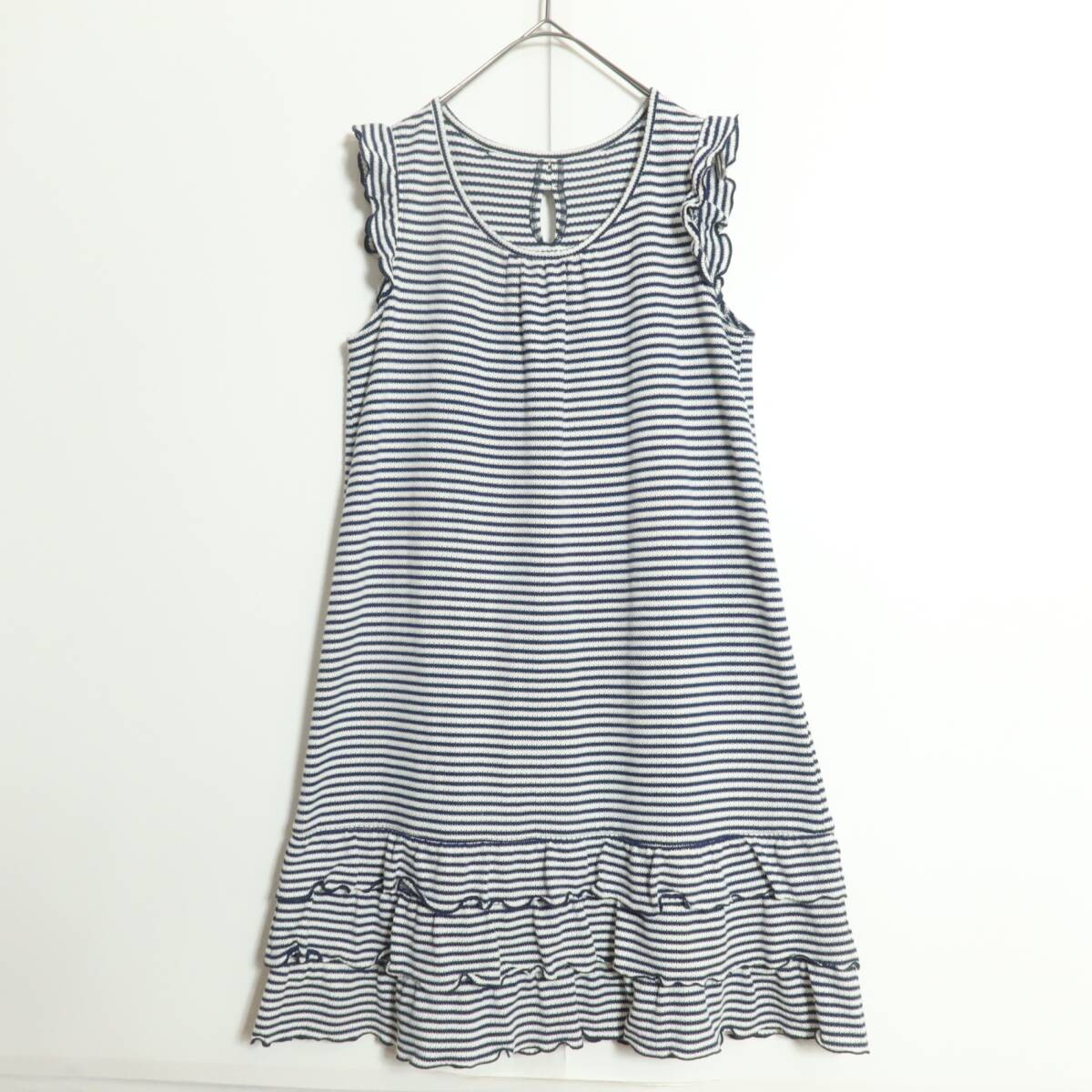 | 商品説明 | 【実寸約】バスト86着丈82.5(cm) 【サイズ表記】 2 【素材】綿54ポリエステル46 【状態】使用感少なめの美品 【デザイン】白×ネイビー系 ノースリーブのひざ丈ワンピースです。 裾はかぶせ段々フリル、首の後ろにリボンモチーフ付き 薄手/ストライプ柄 |