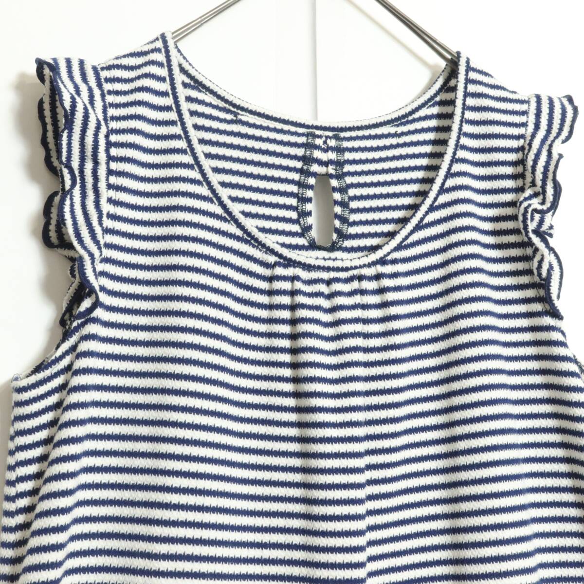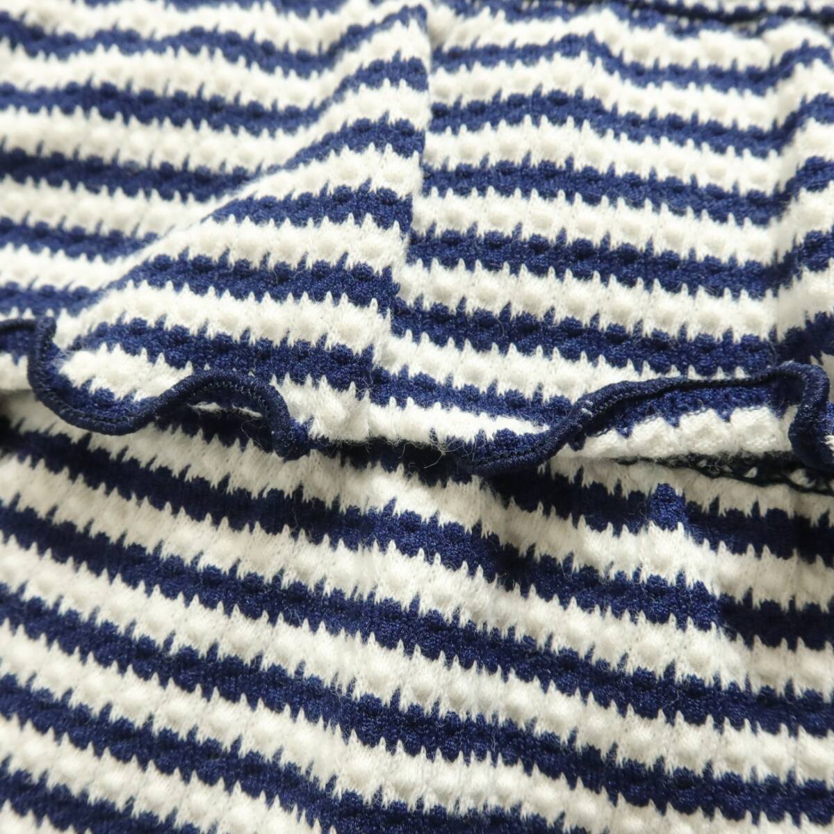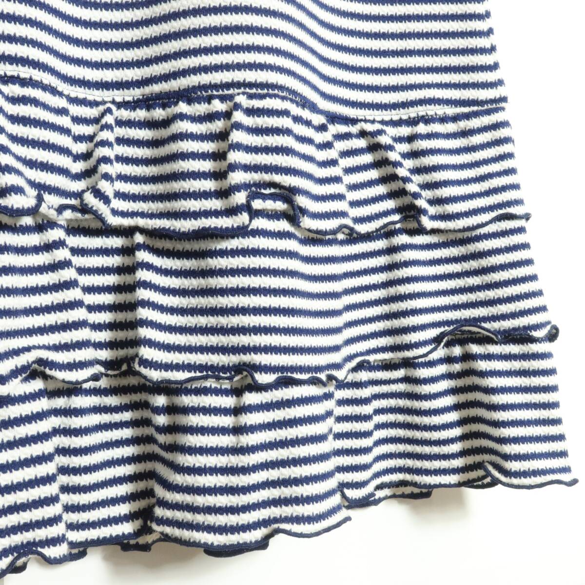 | 商品説明 | 【実寸約】バスト86着丈82.5(cm) 【サイズ表記】 2 【素材】綿54ポリエステル46 【状態】使用感少なめの美品 【デザイン】白×ネイビー系 ノースリーブのひざ丈ワンピースです。 裾はかぶせ段々フリル、首の後ろにリボンモチーフ付き 薄手/ストライプ柄 |