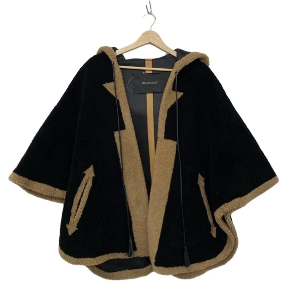 ブランカ BLANCHA ポンチョ サイズ38 M - 黒×ベージュ レディース ムートン/秋/冬 ジャケット
